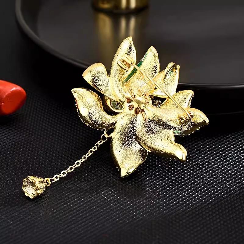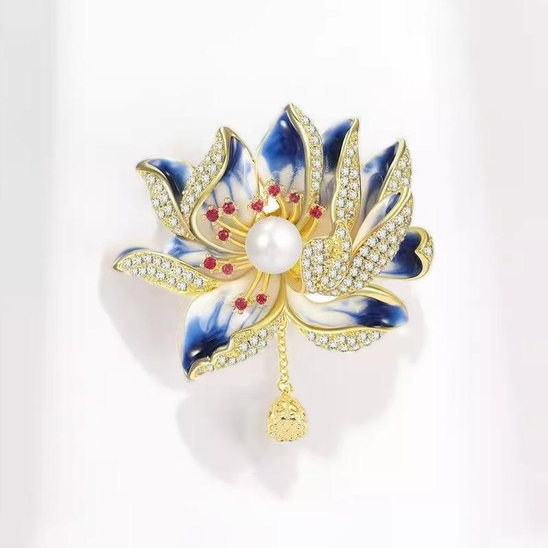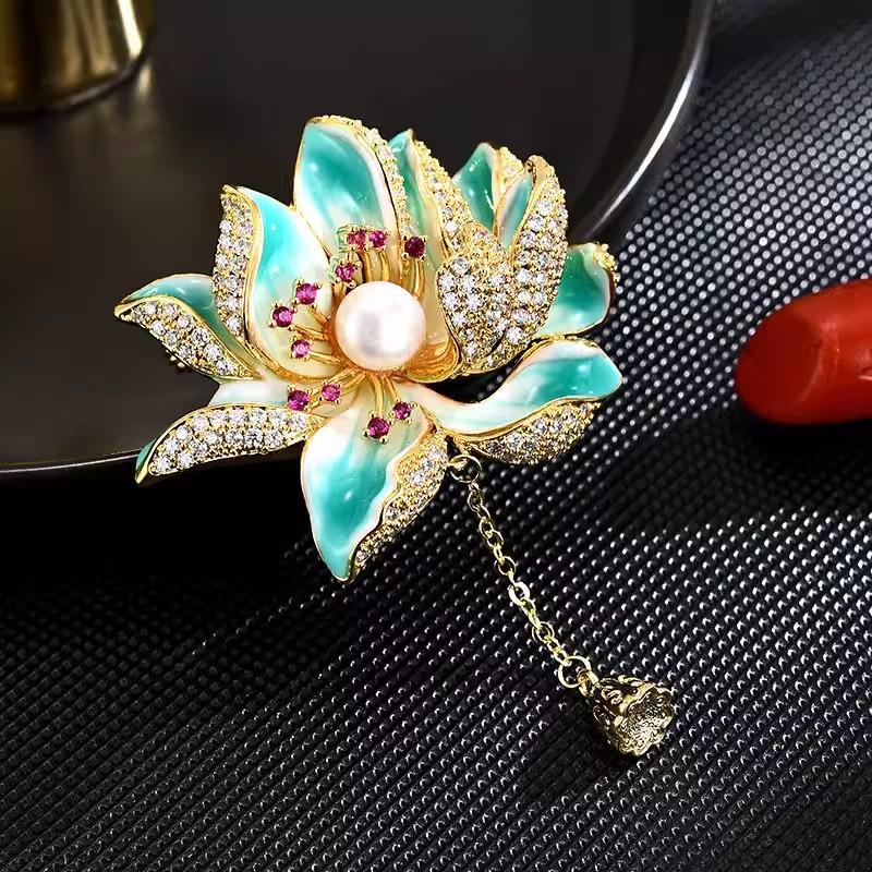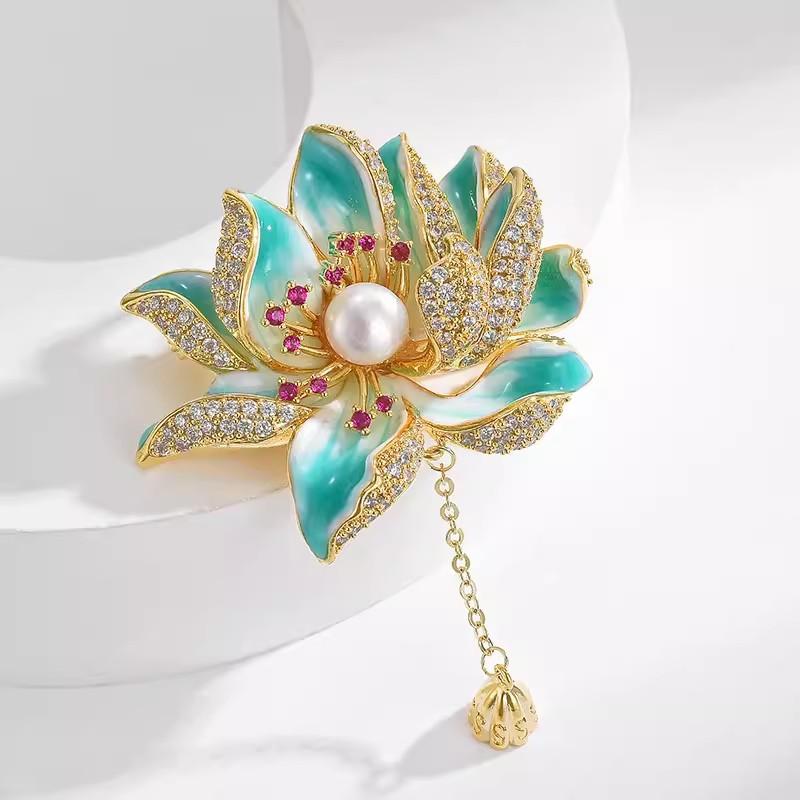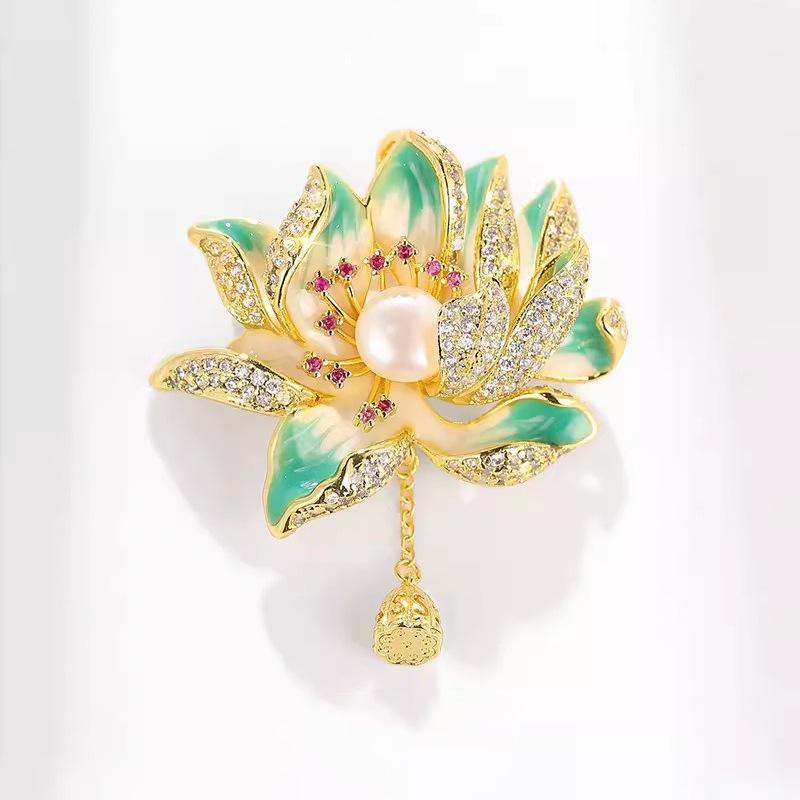 Брошь Лотос Высококачественная женская ретро брошь с жемчужной бахромой Легкая роскошная нишевая дизайнерская булавка с ювелирными изделиями