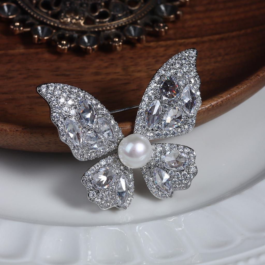 03 Премиум-легкая роскошная микро-инкрустированная циркониевая брошь-бант из супер-флеш-бусины в стиле ретро