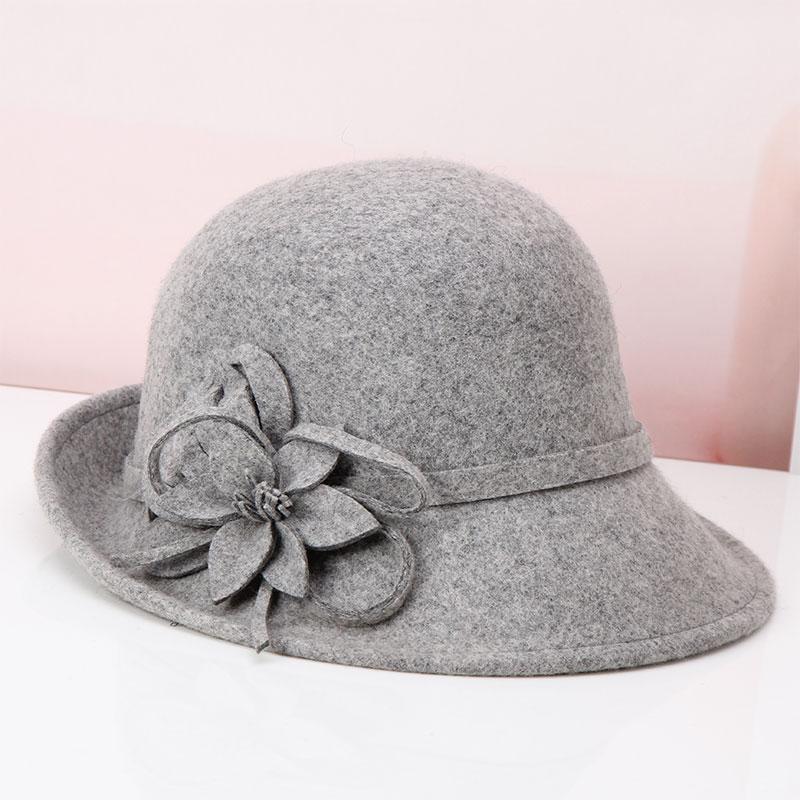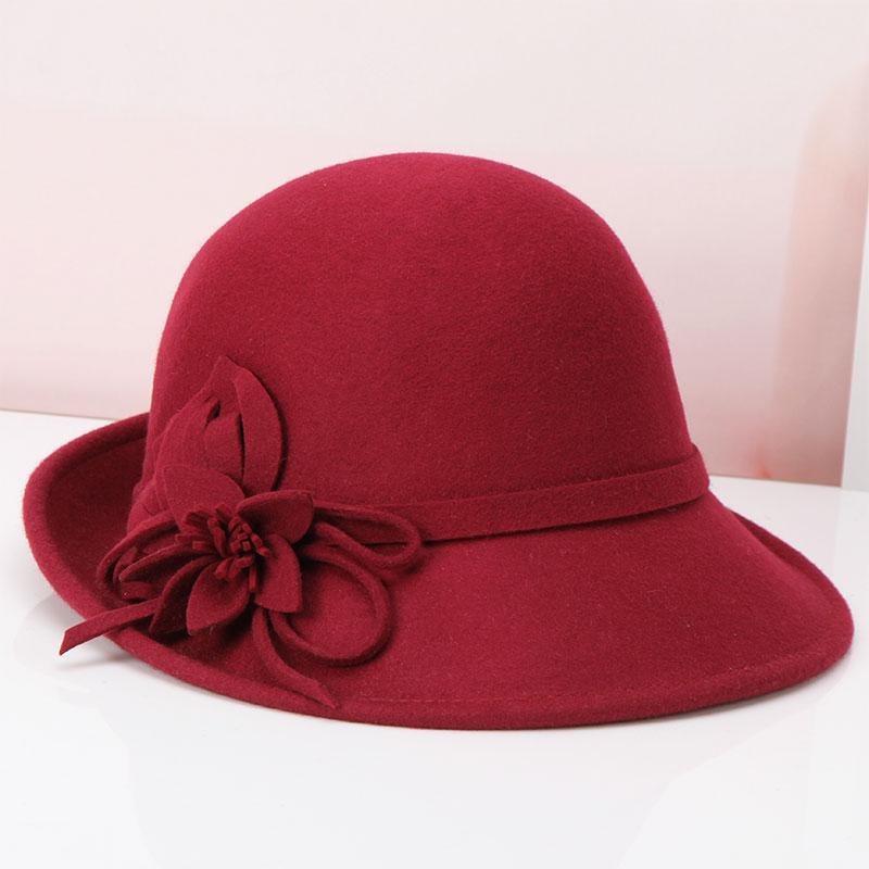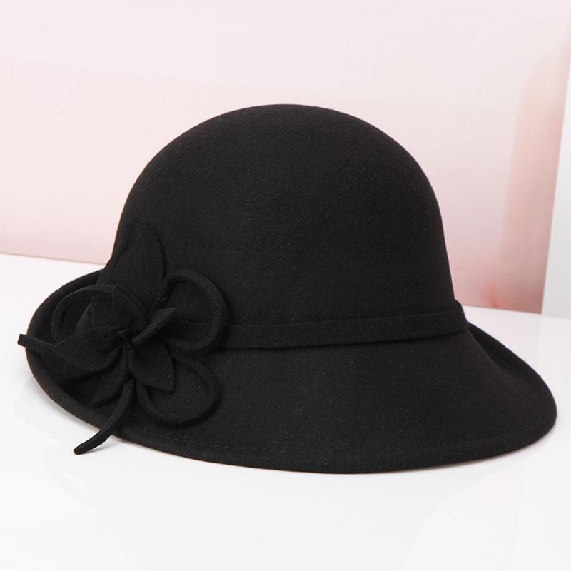 Женская шерстяная шляпа-федора для девочек, зимняя теплая шерстяная шапка для девочек, элегантная шапка с цветочным принтом, шерстяная шляпа для бассейна, британская регулируемая шапка B-8903