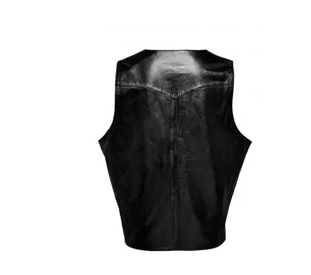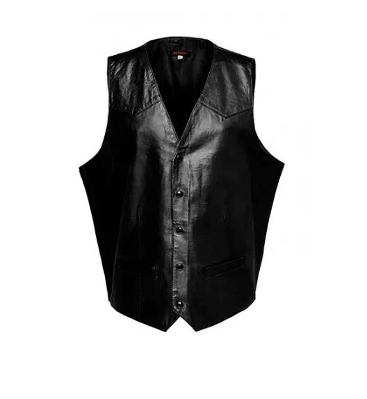 Черная куртка на пуговицах для мужчин из овчины, кожаный жилет в стиле вестерн, пальто, классический жилет