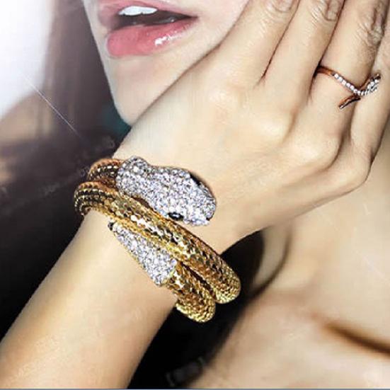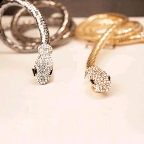 Винтажный ретро изогнутый эластичный браслет в виде змеи, ювелирные изделия-манжеты, браслет в стиле панк со стразами