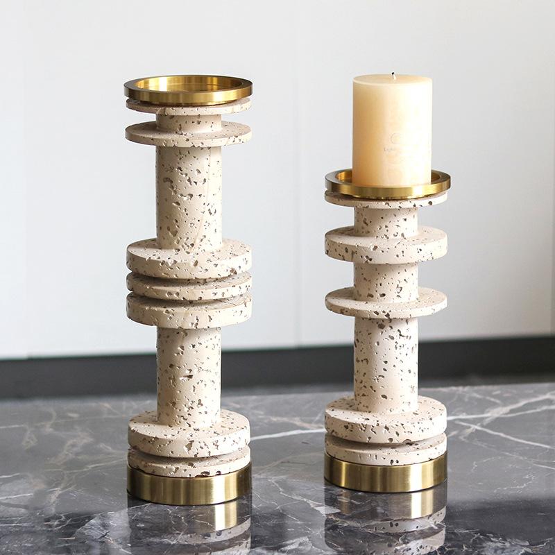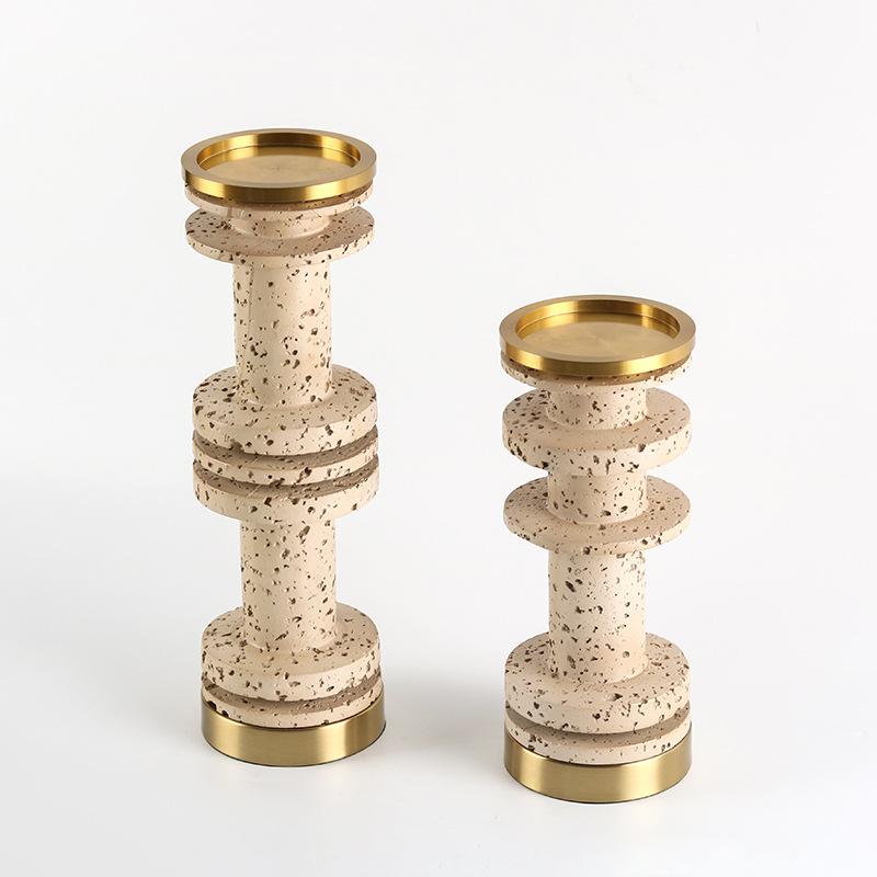 Легкий роскошный подсвечник в европейском стиле, ретро-украшения, модель комнаты ресторана B&B, имитация травертина в античном стиле, изделия ручной работы