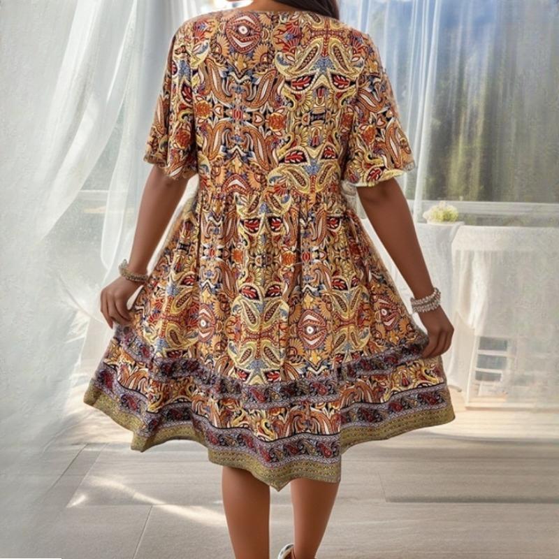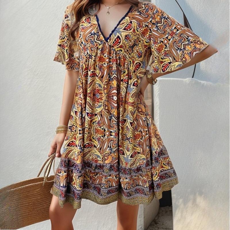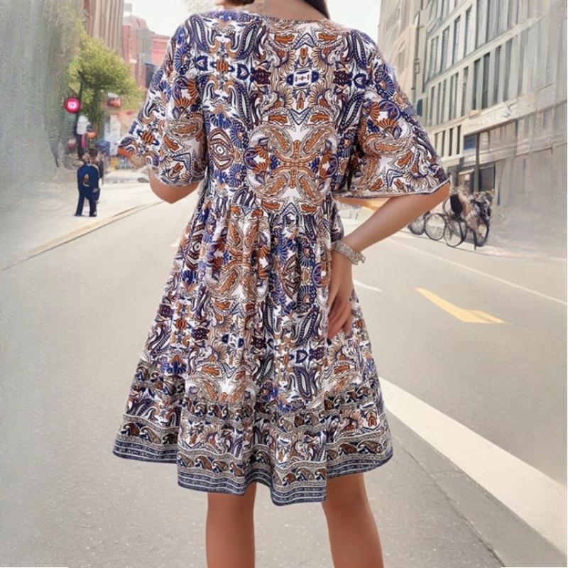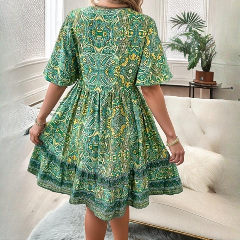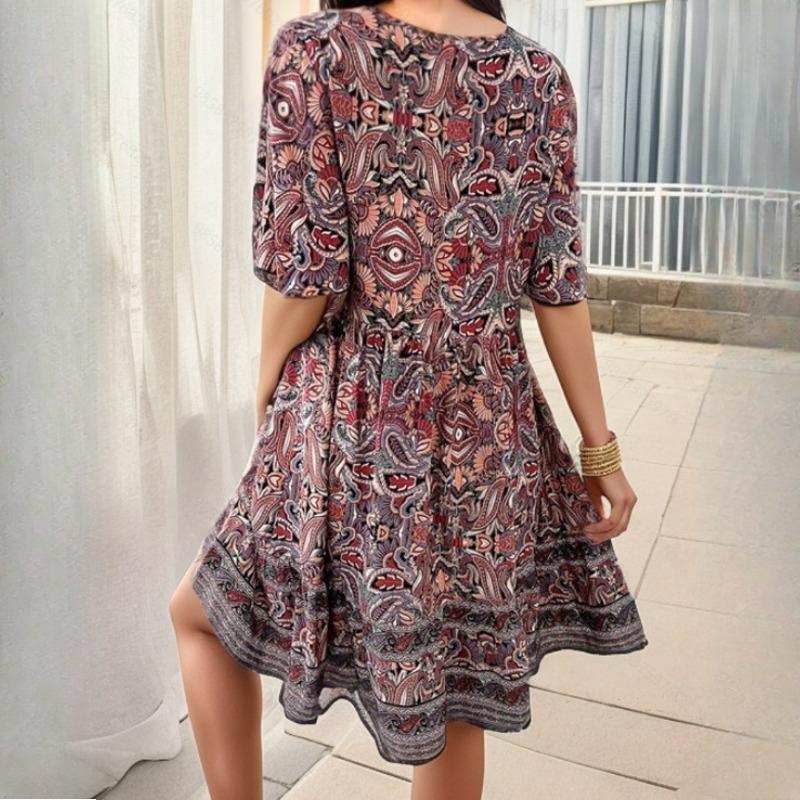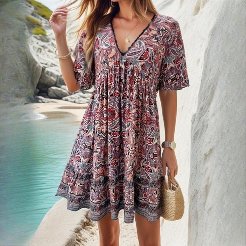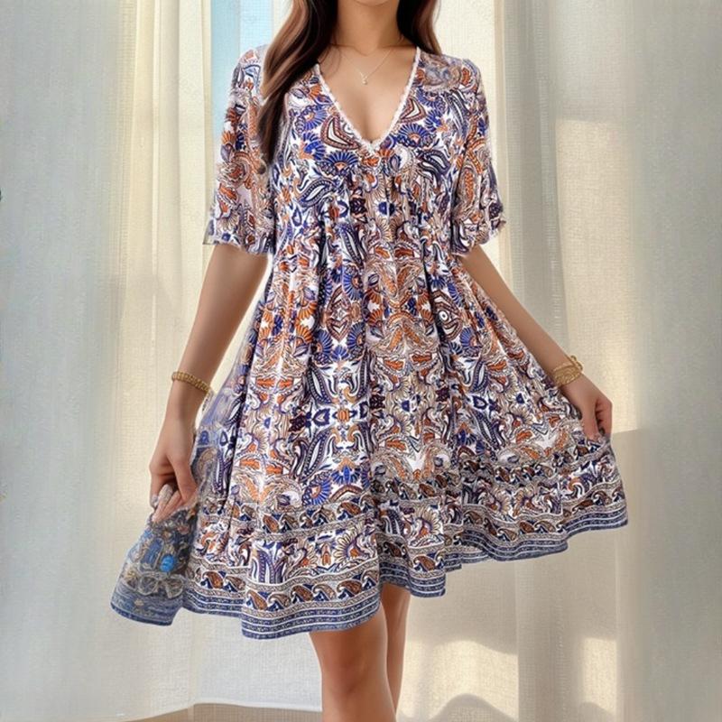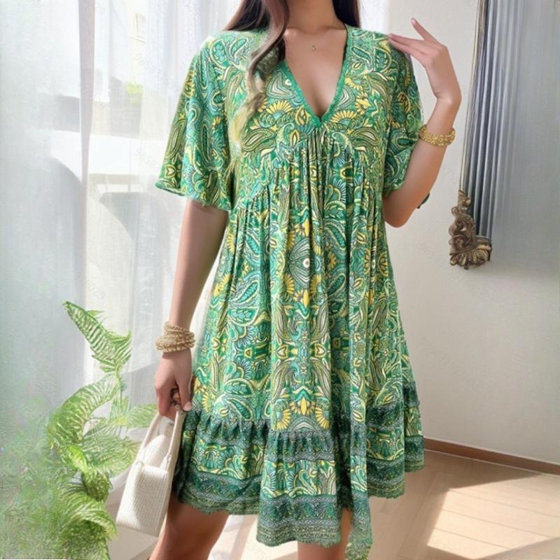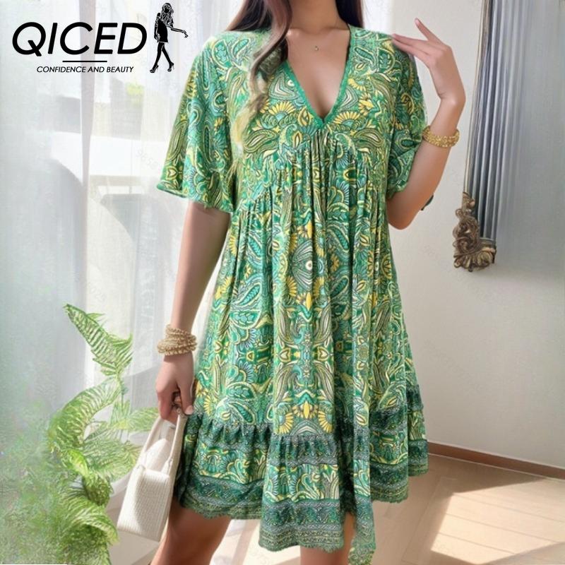 QICED Женские весенне-летние праздничные повседневные платья с принтом и V-образным вырезом