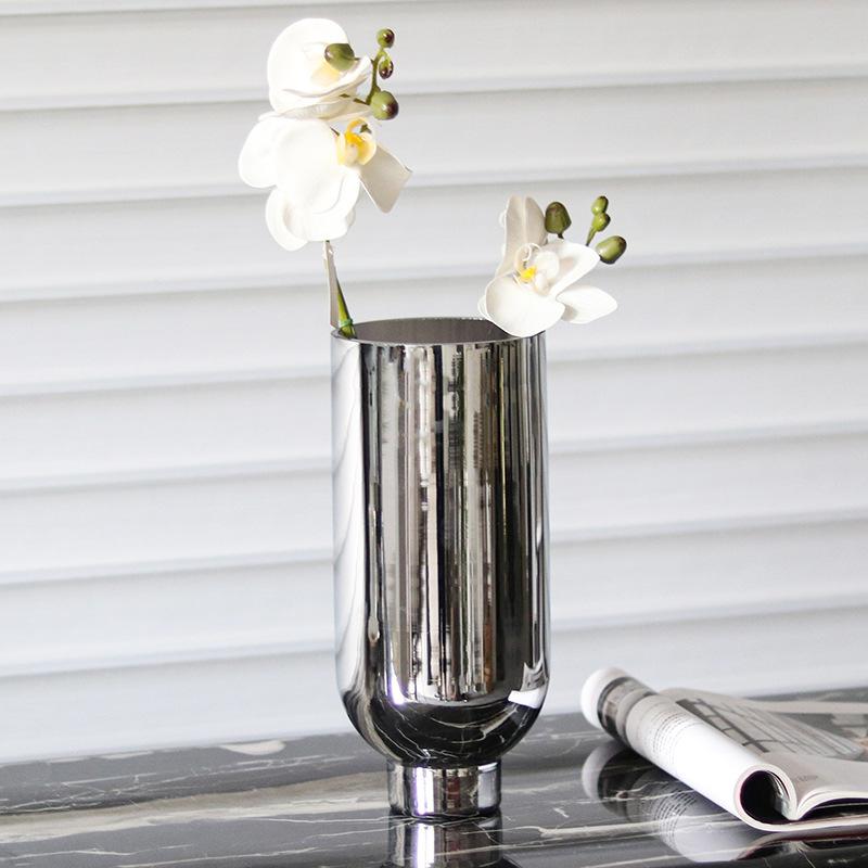 Современные простые гальванизированные серебряные стеклянные цветочные украшения модель дома офис продаж отель ваза большого диаметра украшения