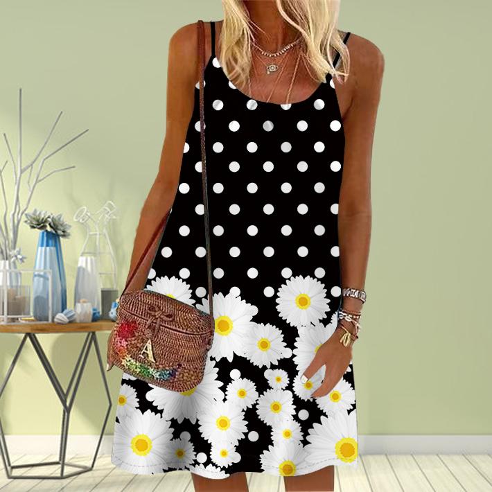 Женское мини-платье с цветочным принтом в виде круговых точек, без рукавов, вечернее платье, летнее пляжное платье, сарафан
