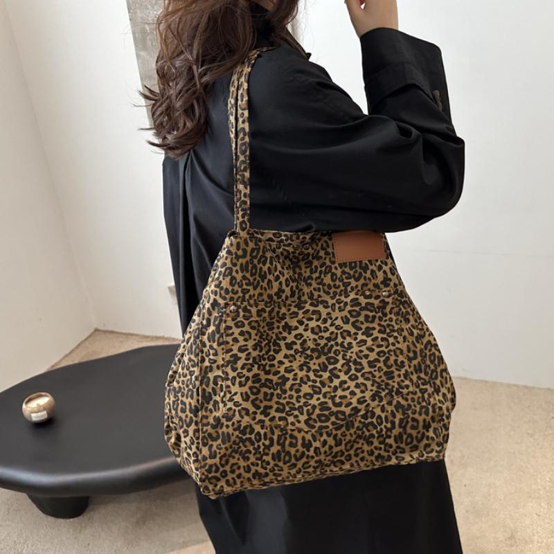 Большая вместительная сумка через плечо с леопардовым принтом, модная осенняя простая персонализированная сумка-тоут для покупок