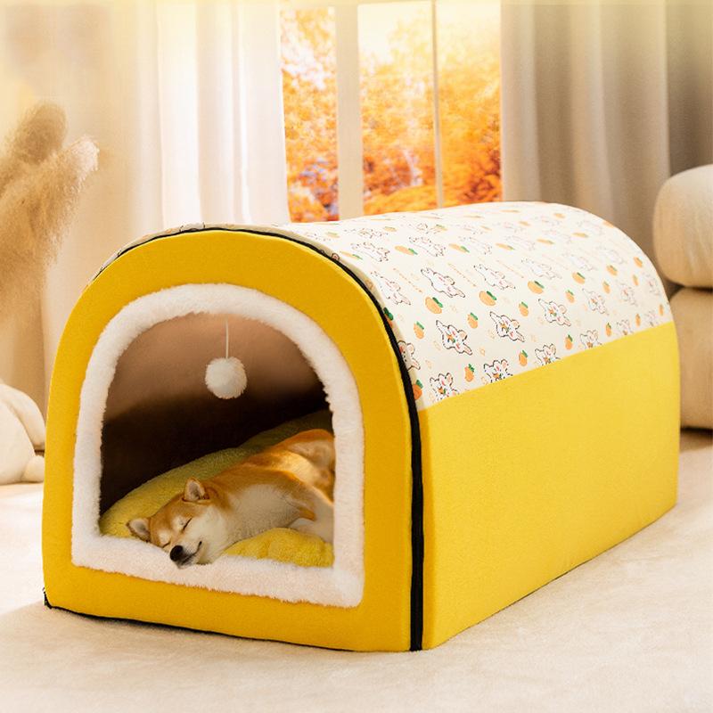 Желтый цветной полностью напечатанный изогнутый домик-будка для средних и крупных собак, полузакрытый большой объем, теплая будка для домашних собак, кровать для собак — купить товар онлайн с бесплатной доставкой по всему миру!