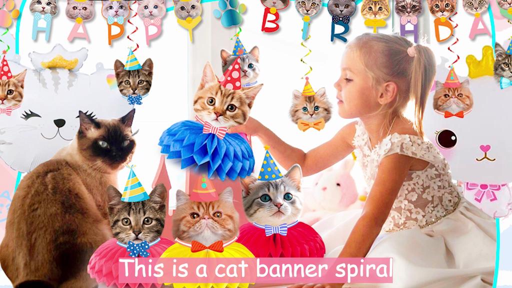 Украшения для кошачьего дня рождения, 27 шт. украшений для кошачьего дня рождения - кошачий баннер и украшения в виде завитков и т. д. Украшения для кошачьей вечеринки, товары для кошачьего дня рождения