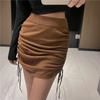 Модная короткая юбка с высокой талией и завязками на завязках, женская однотонная облегающая повседневная юбка с запахом на бедрах, свободная, А-силуэт, элегантная, винтажная, офисная, женская юбка 25660