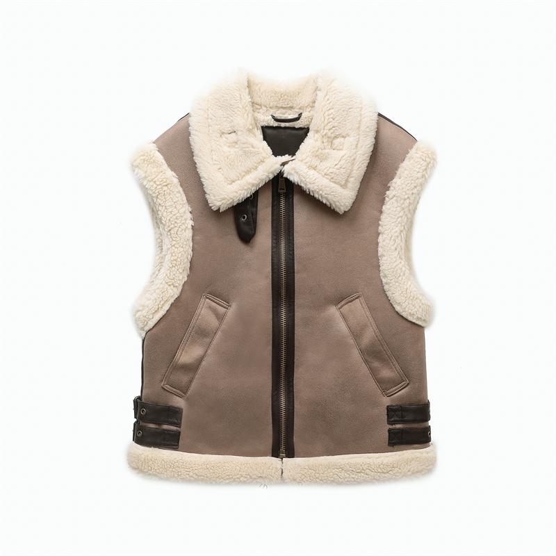 Осенне-зимнее женское теплое меховое пальто без рукавов из флиса с прострочкой, жилет, куртка