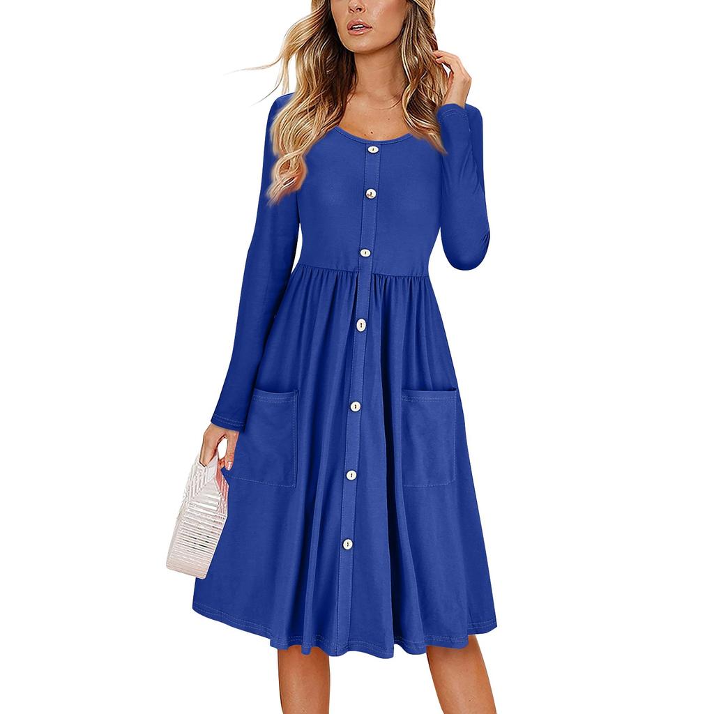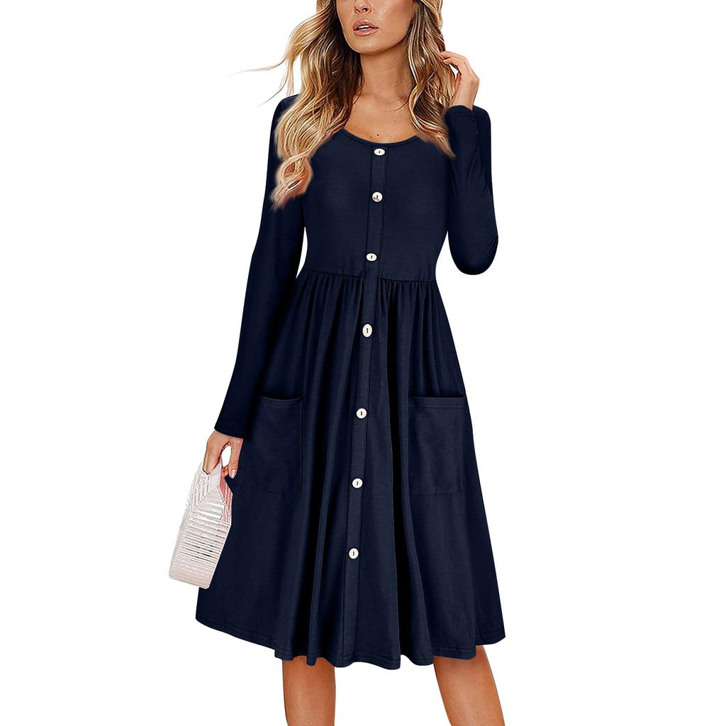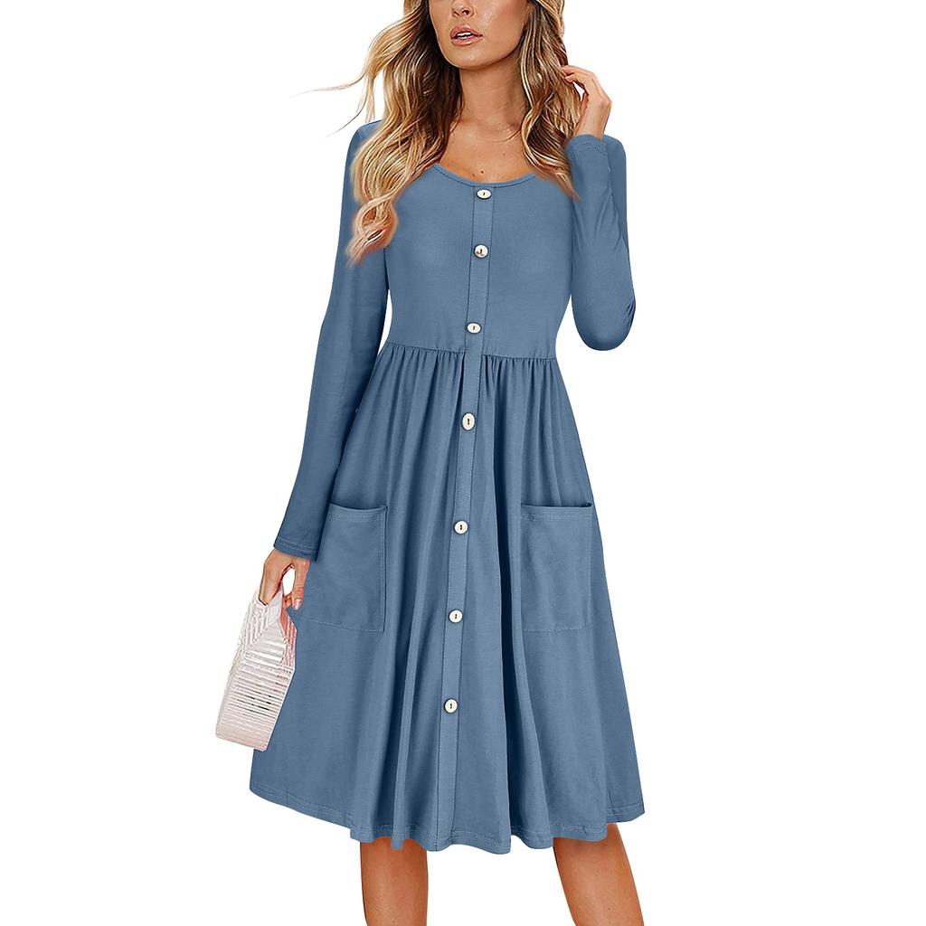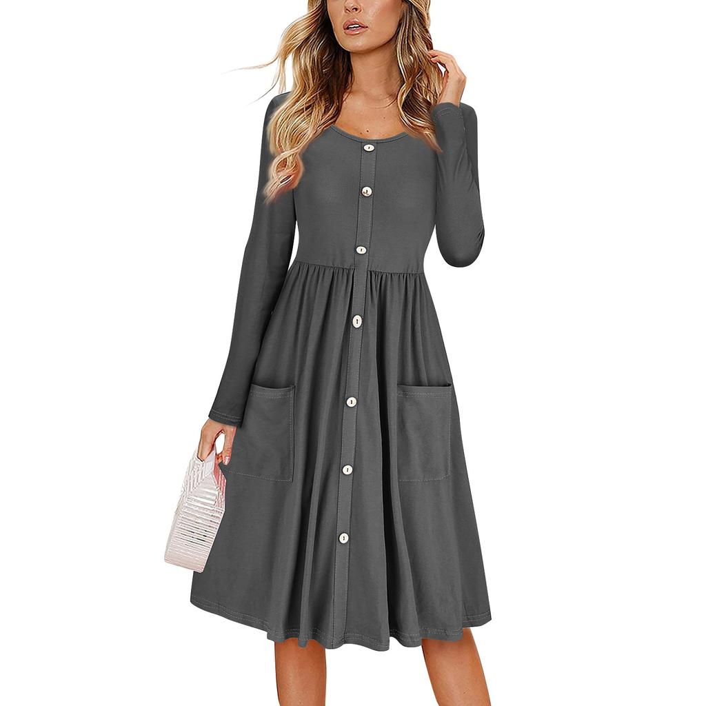 Женское повседневное модное сексуальное удобное платье-сарафан на пуговицах с длинными рукавами и карманами