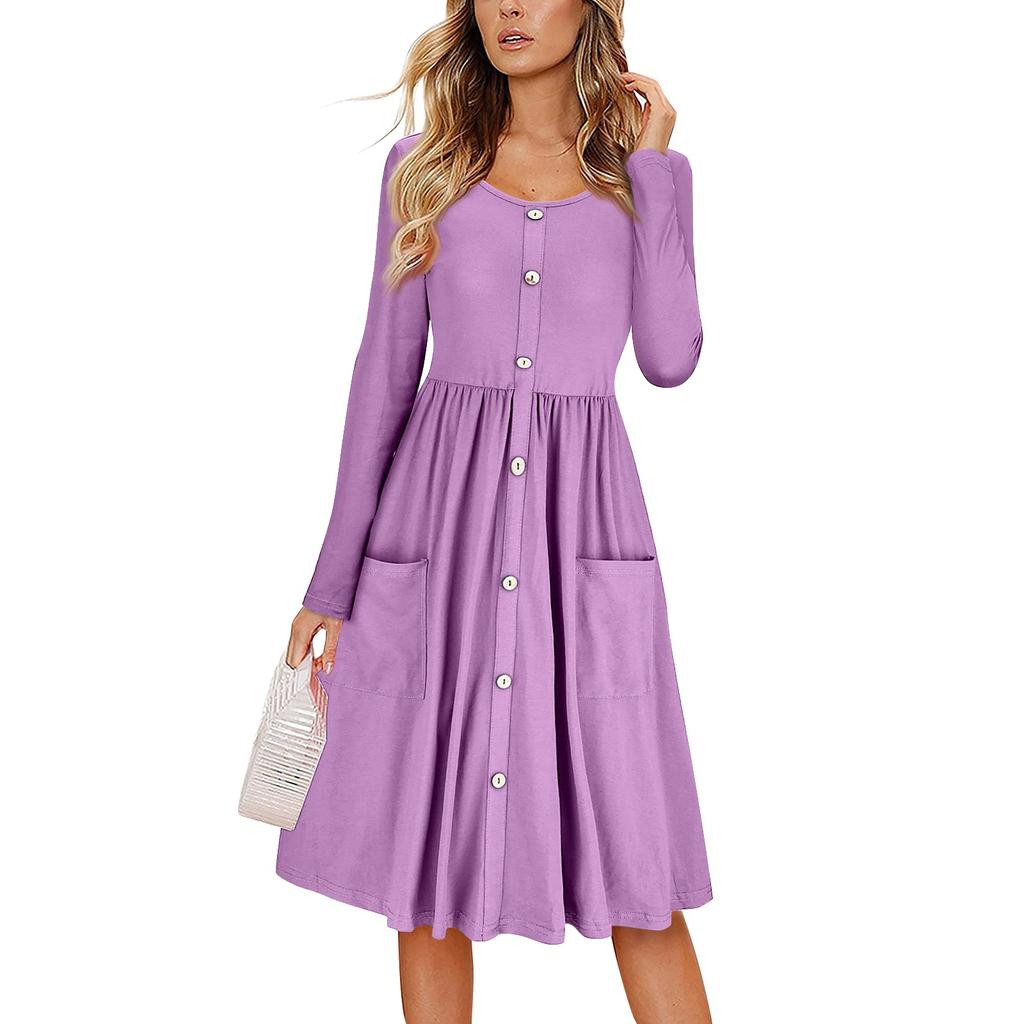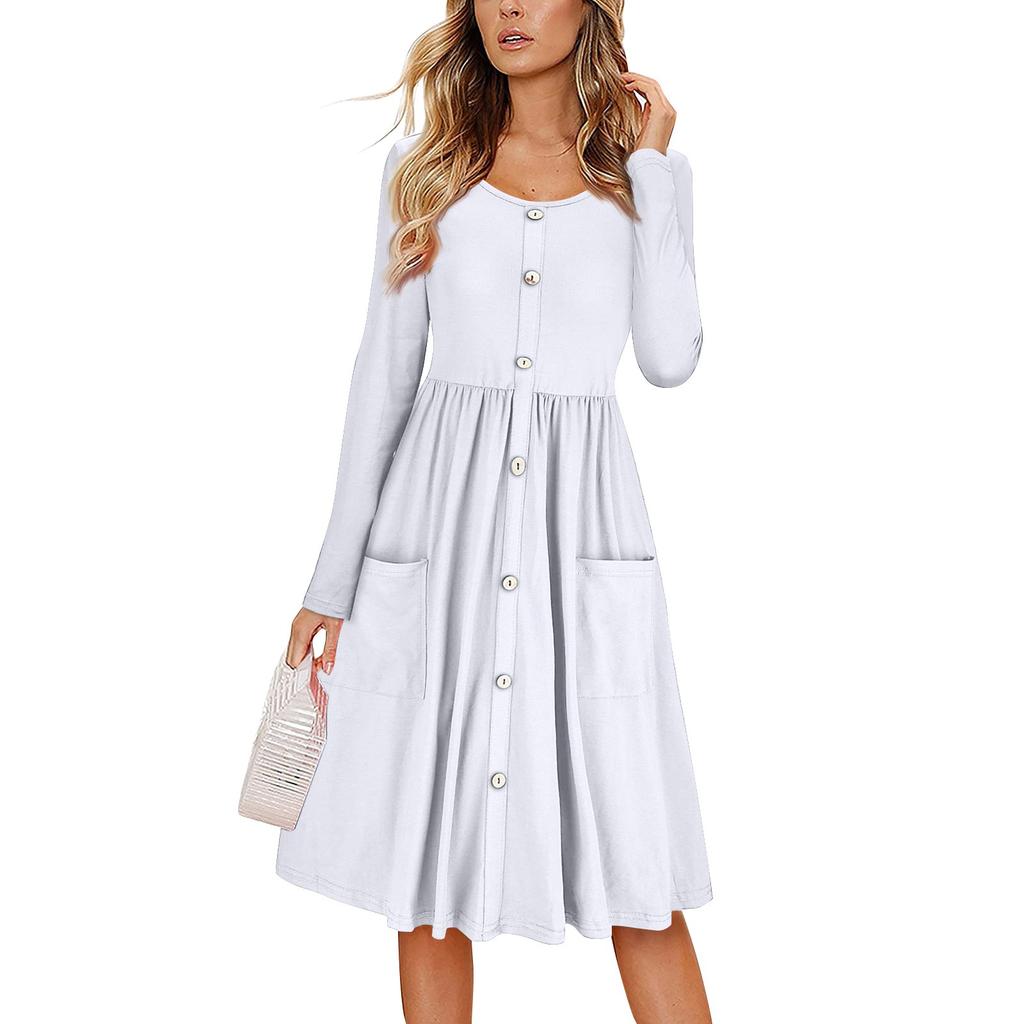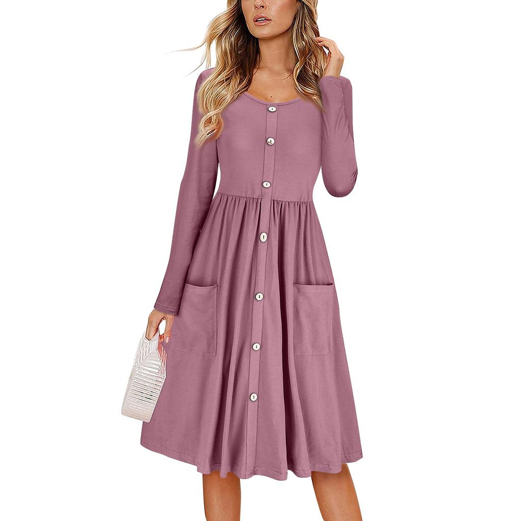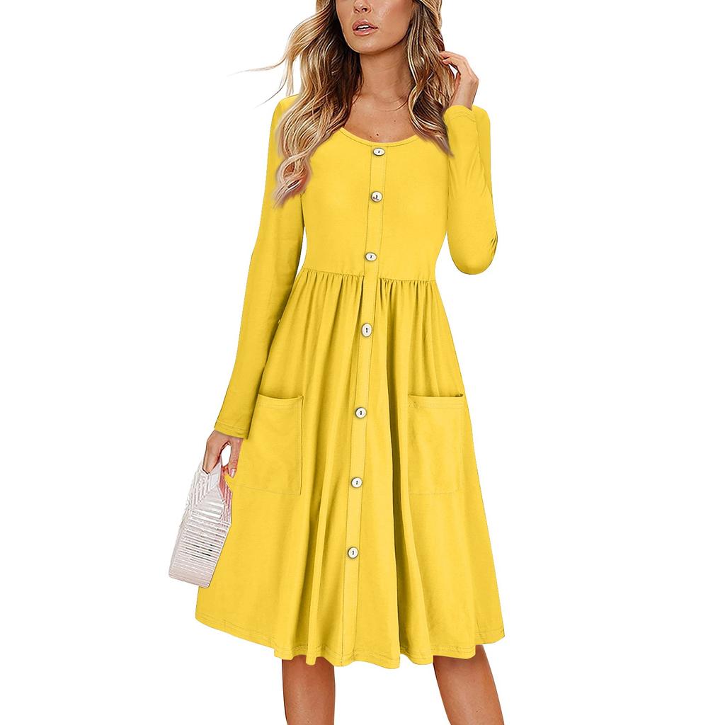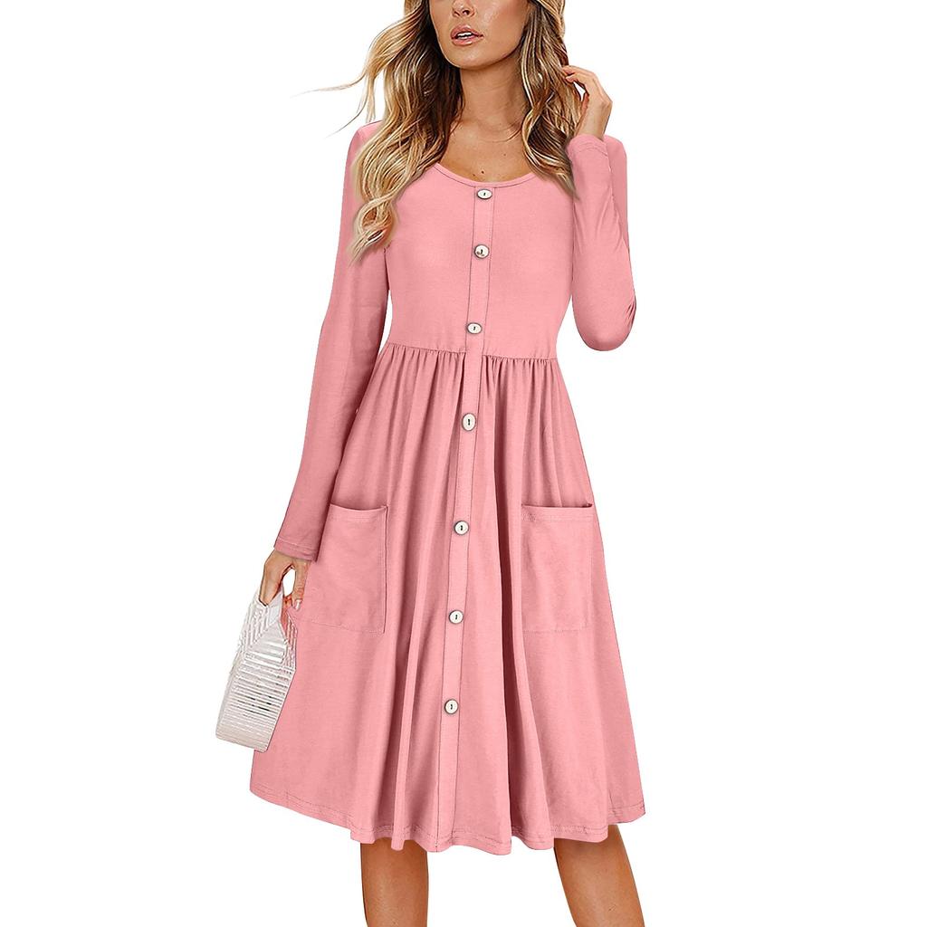 Женское повседневное модное сексуальное удобное платье-сарафан на пуговицах с длинными рукавами и карманами