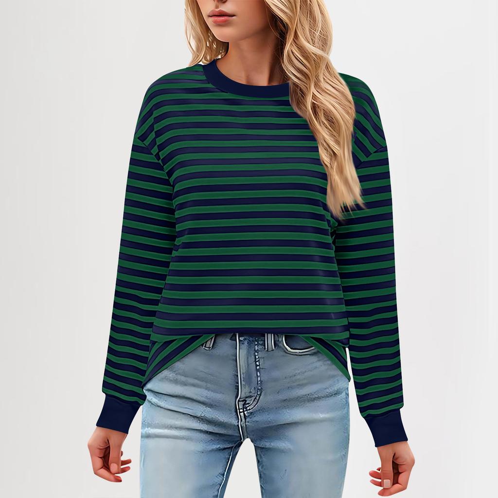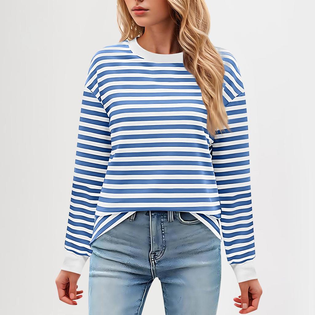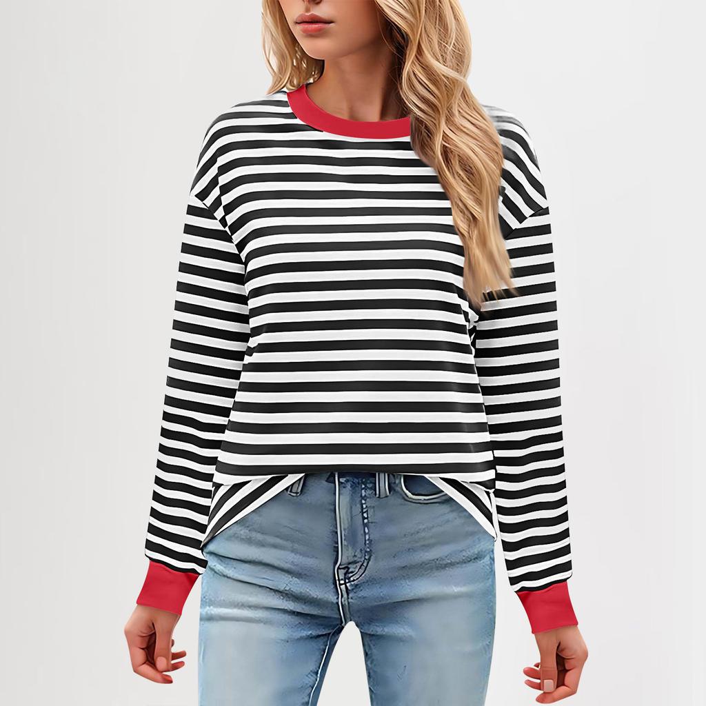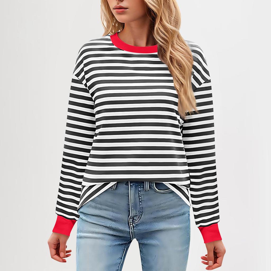 Женская повседневная туника, свободный топ с длинными рукавами и полосатым воротником