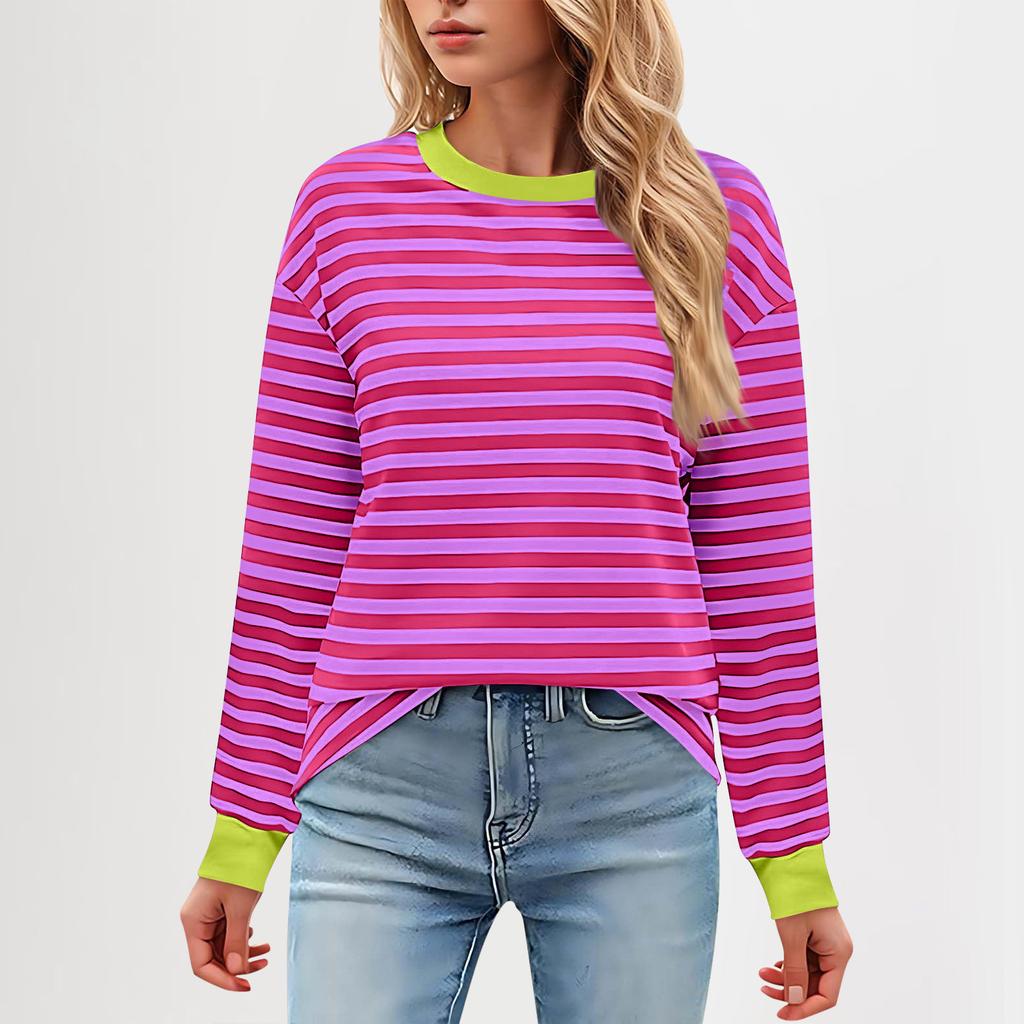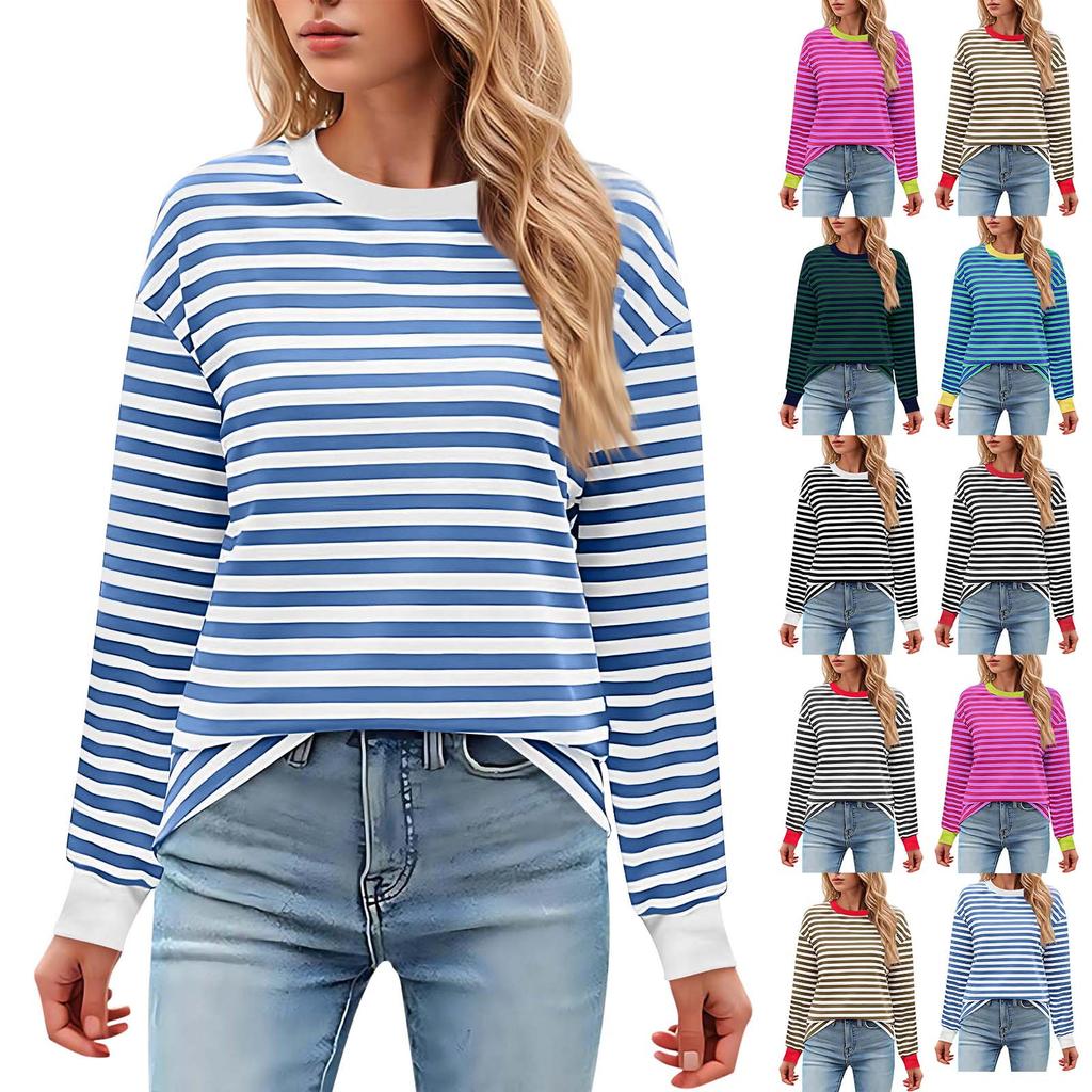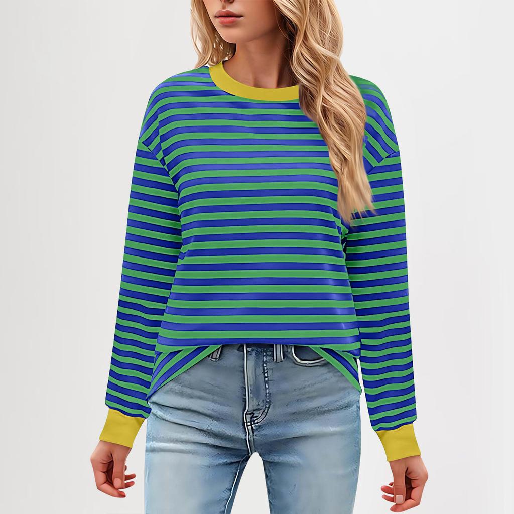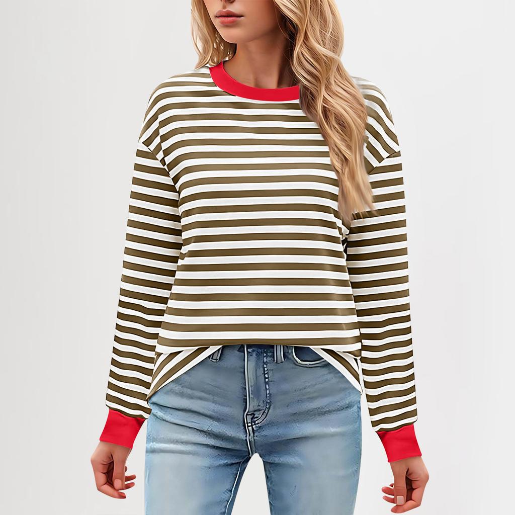 Женская повседневная туника, свободный топ с длинными рукавами и полосатым воротником