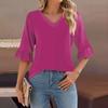 Женский повседневный топ с рукавами 3/4, летняя футболка с v-образным вырезом и пышными рукавами