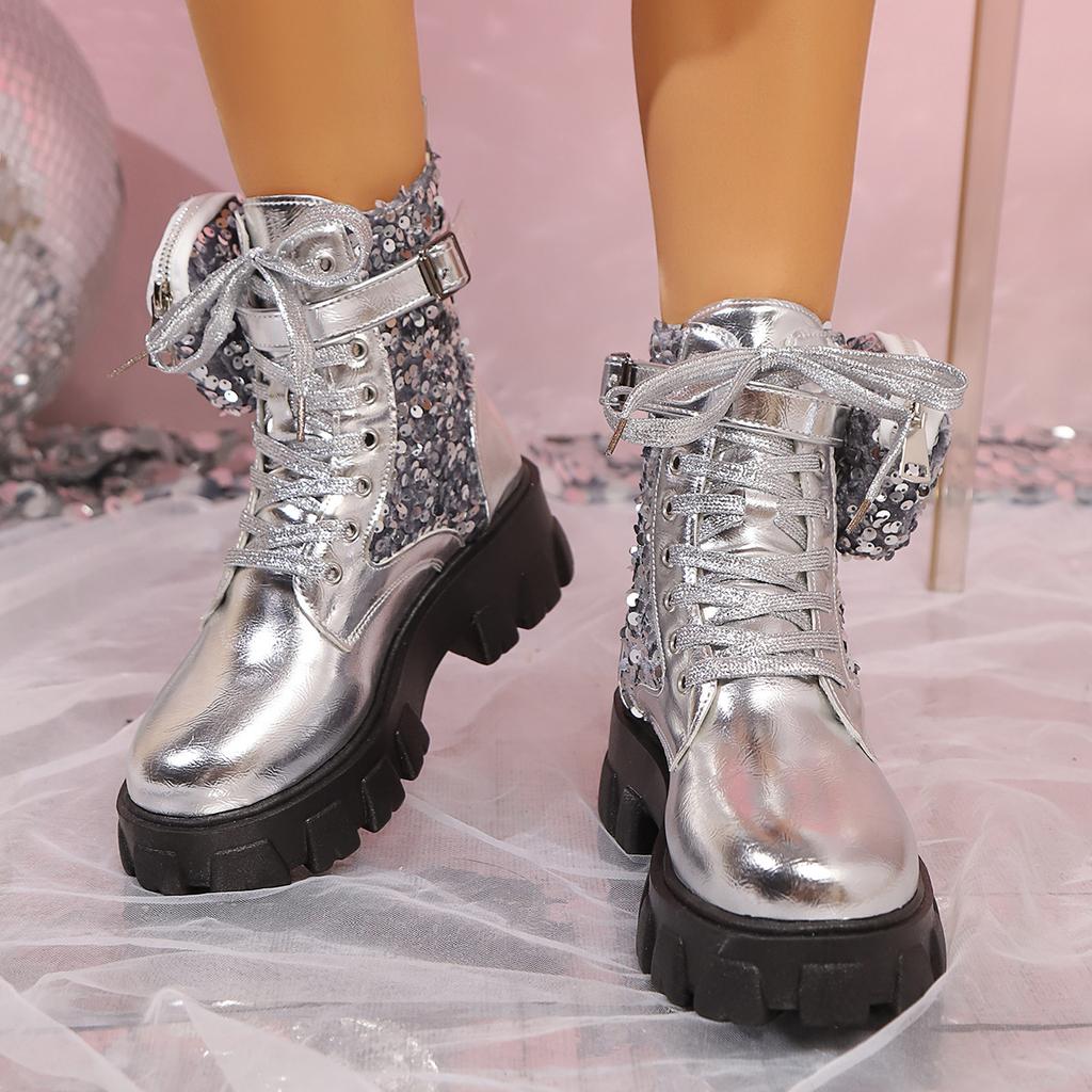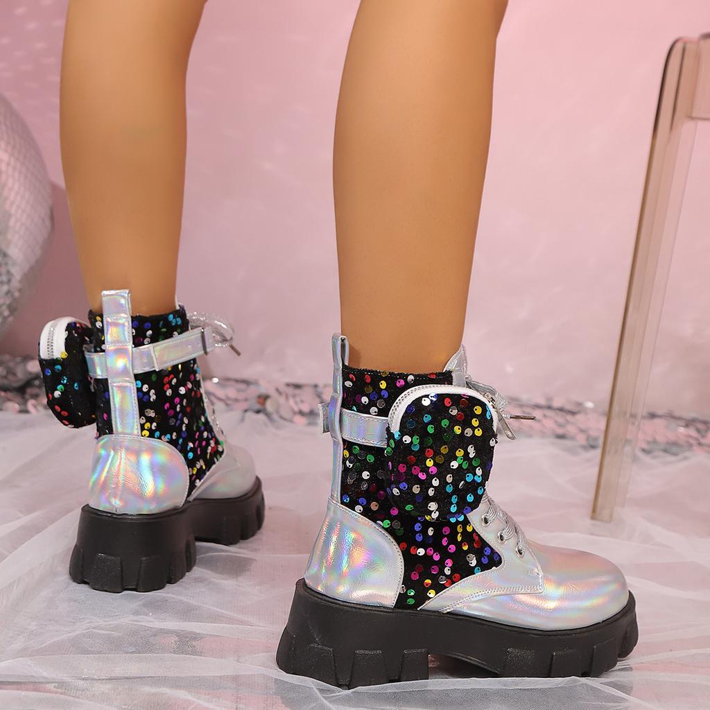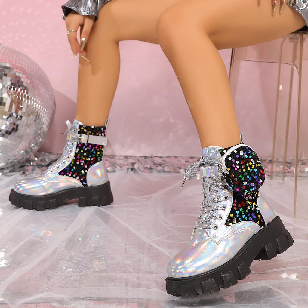 Осень и зима Новые европейские и американские популярные блестки для девочек универсальные короткие женские сапоги Martin Boots Women's Tide