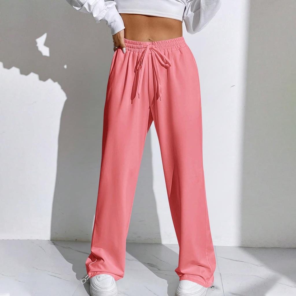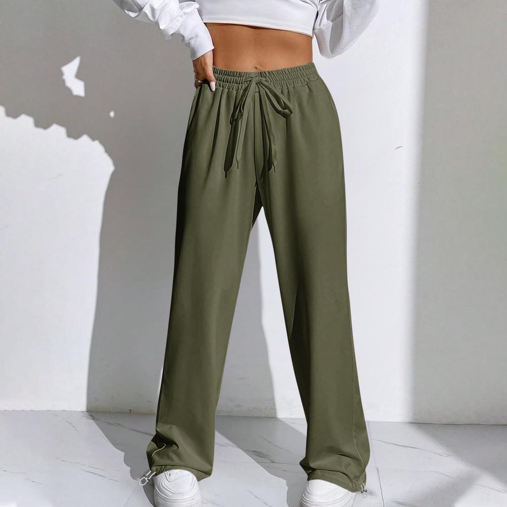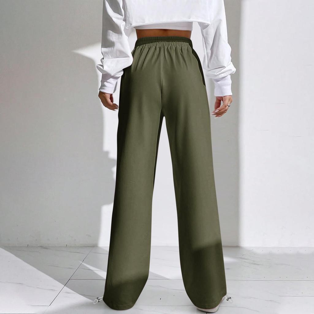 Женские эластичные брюки с высокой талией, повседневные активные брюки с широкими штанинами и длинными брюками, брюки с карманами