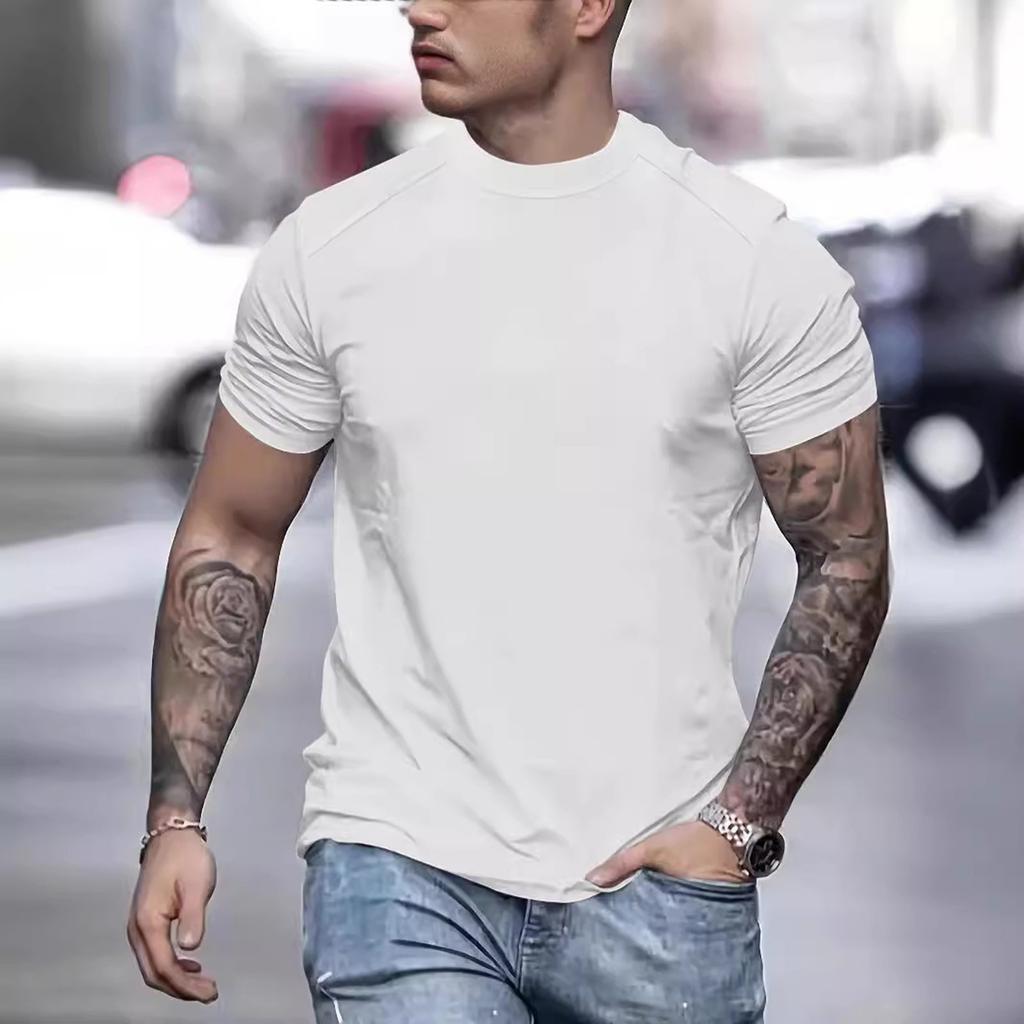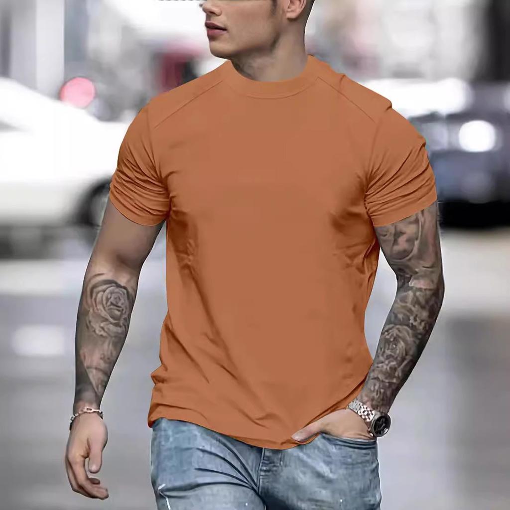 Мужская однотонная замшевая футболка с коротким рукавом, мужской летний повседневный топ с круглым вырезом