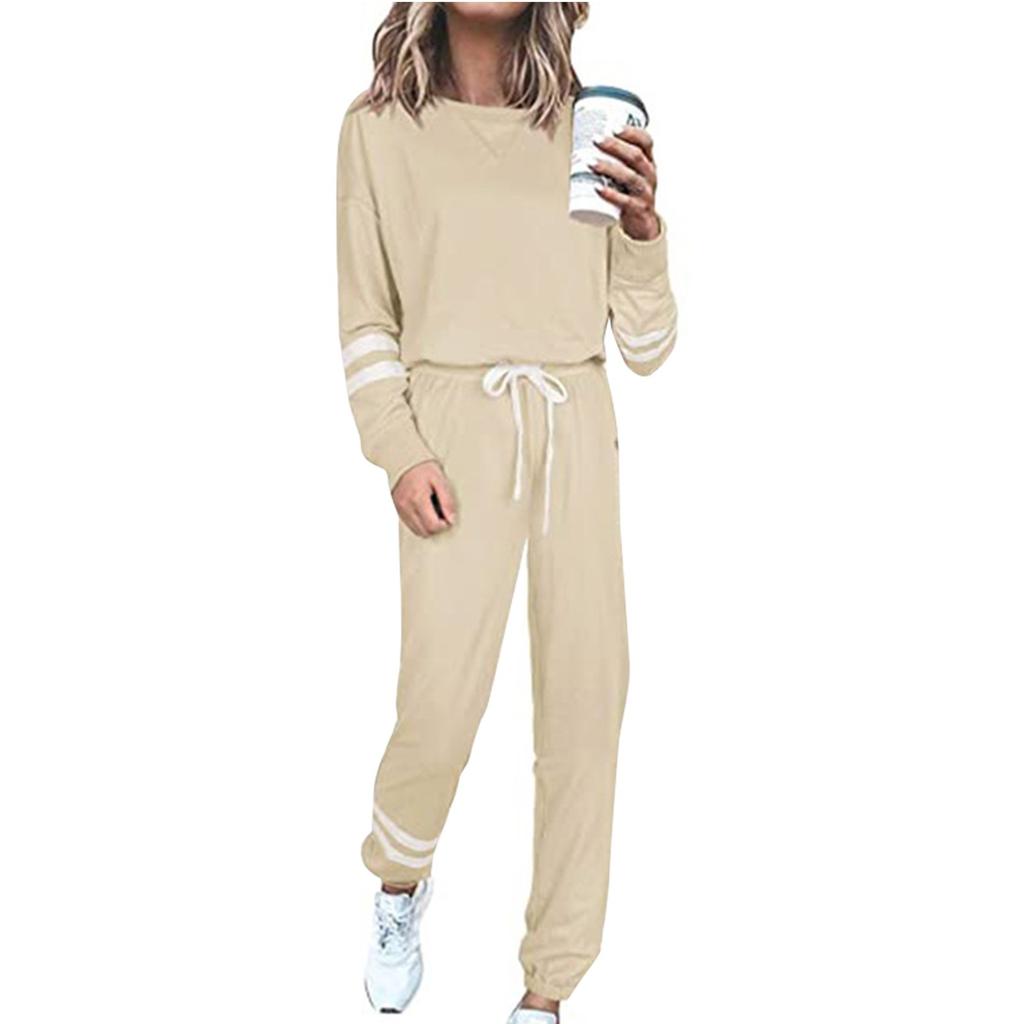 Женский свободный пуловер с круглым вырезом, повседневный модный костюм с длинными рукавами и длинными брюками