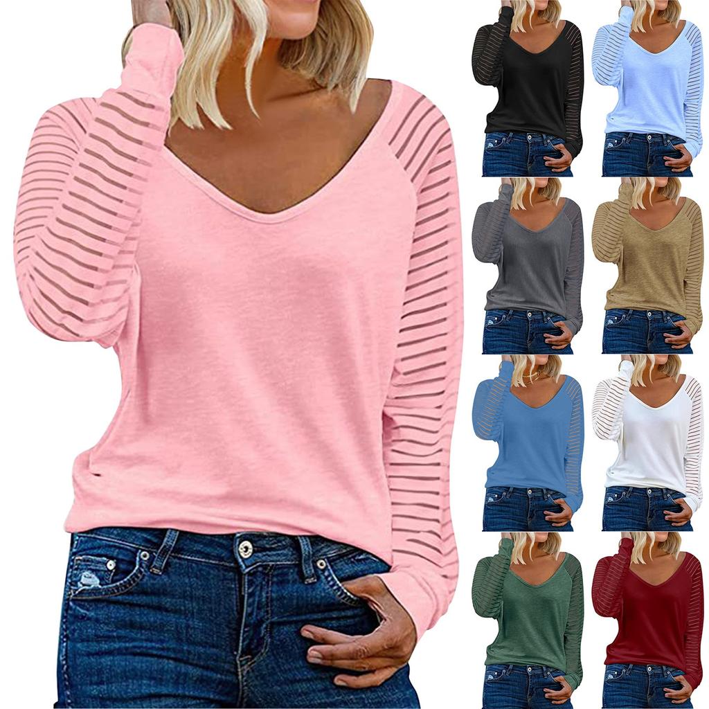 Женский топ с длинными рукавами в стиле пэчворк, повседневная свободная рубашка в полоску, однотонный топ с V-образным вырезом — купить товар онлайн с бесплатной доставкой по всему миру!