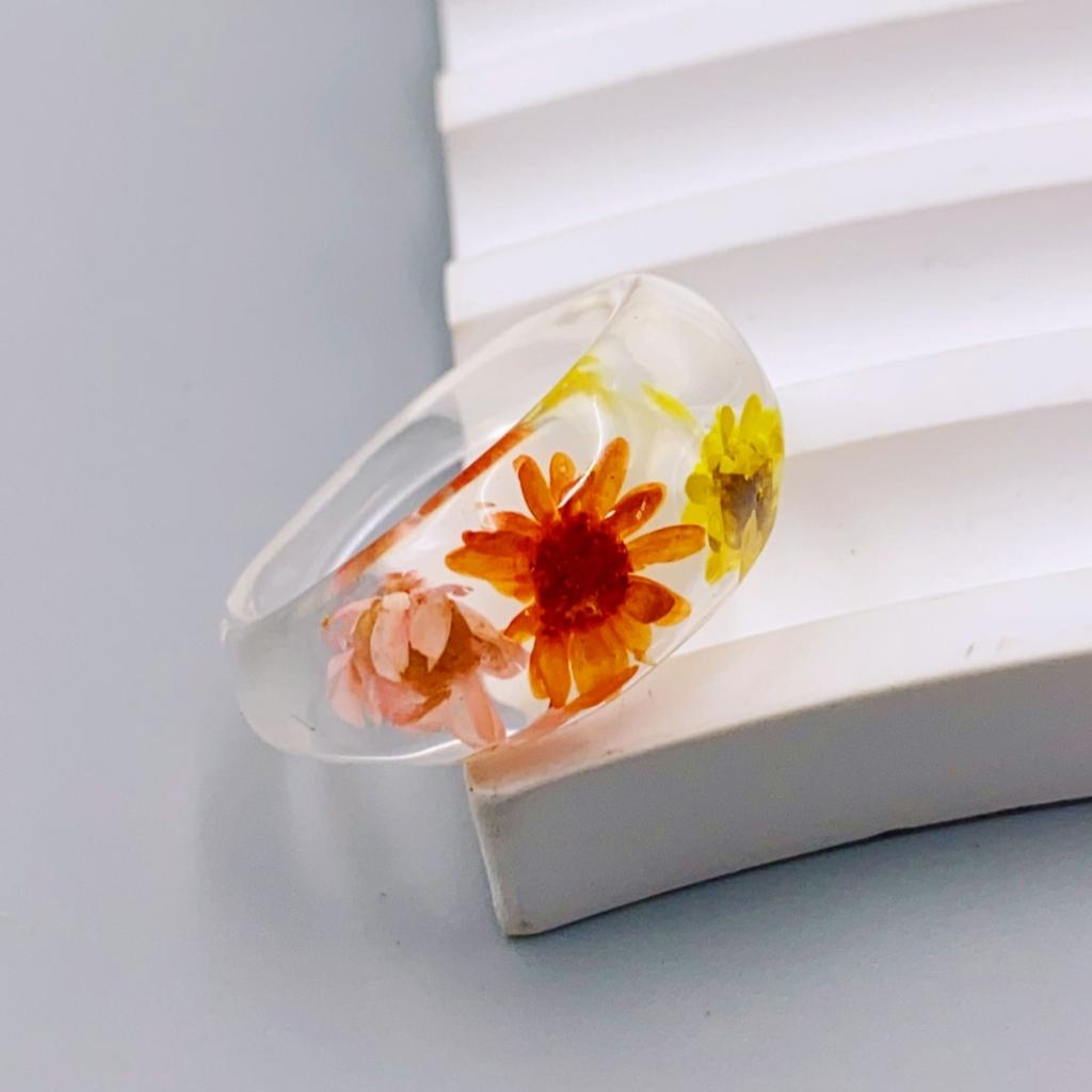 Прозрачное кольцо из смолы с настоящими цветами, уникальный ежедневный аксессуар для женщин кольца для женщин