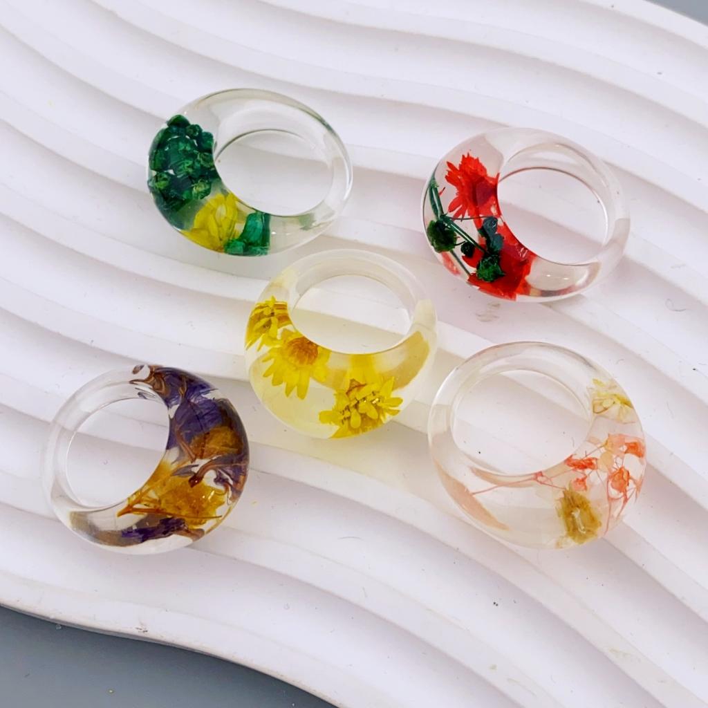 Прозрачное кольцо из смолы с настоящими цветами, уникальный ежедневный аксессуар для женщин кольца для женщин