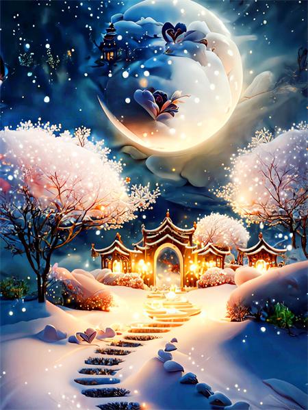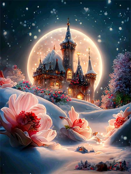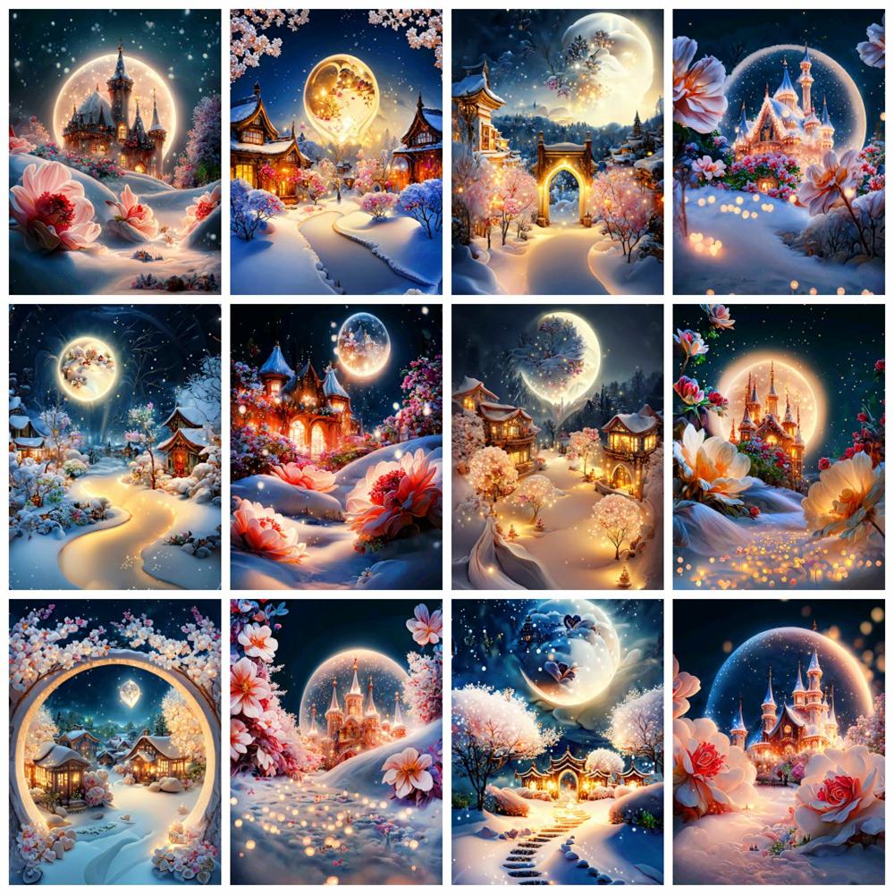 Полный квадрат/круглый DIY Алмазная картина Лунный замок Домашний декор Вышивка Мозаика Зимний дом Пейзаж Наклейка на стену