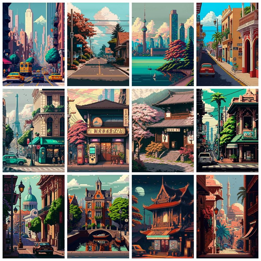 Diy Алмазная картина Мозаика Дом Улица Полный квадрат Круглая вышивка Мозаика Пейзаж Домашний декор