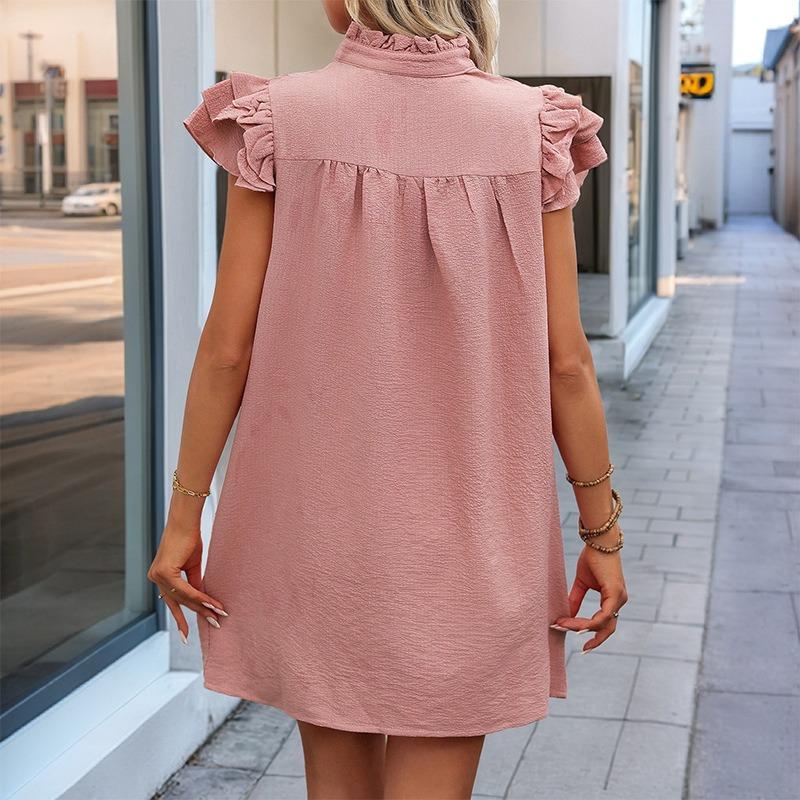 YYFS Женские модные летние весенние однотонные повседневные платья с v-образным вырезом и короткими рукавами и высокой талией