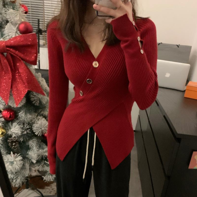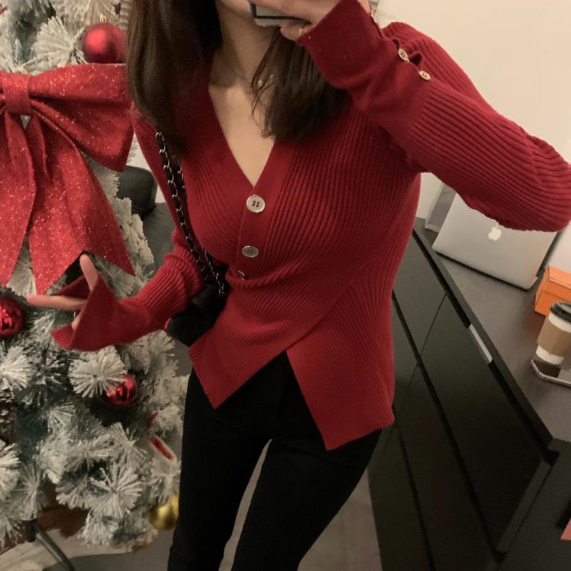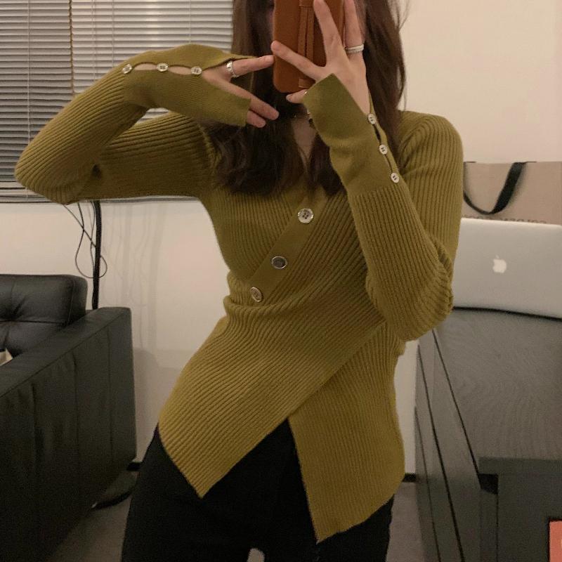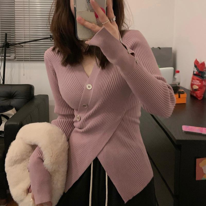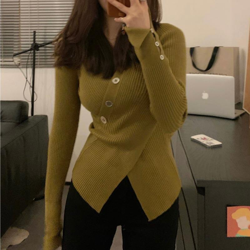 Осенние повседневные свитера с длинным рукавом и V-образным вырезом, женские шикарные облегающие трикотажные свитера, элегантные однотонные модные зимние джемперы 25667