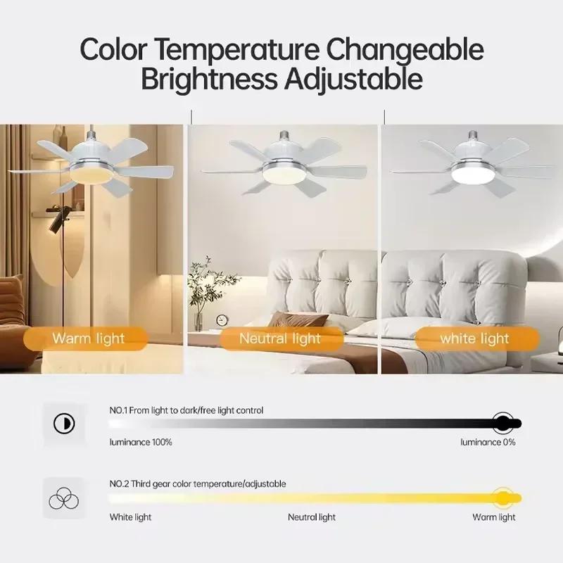Потолочная люстра-вентилятор с цоколем и пультом дистанционного управления, светодиодная лампа E27, лампа-вентилятор, прохладный ветер для спальни, гостиной, освещение