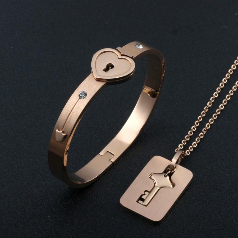 Модные парные комплекты ювелирных изделий для влюбленных из нержавеющей стали, браслеты с замком в виде сердца, ожерелье с подвеской в виде ключа, парный комплект — купить товар онлайн с бесплатной доставкой по всему миру!