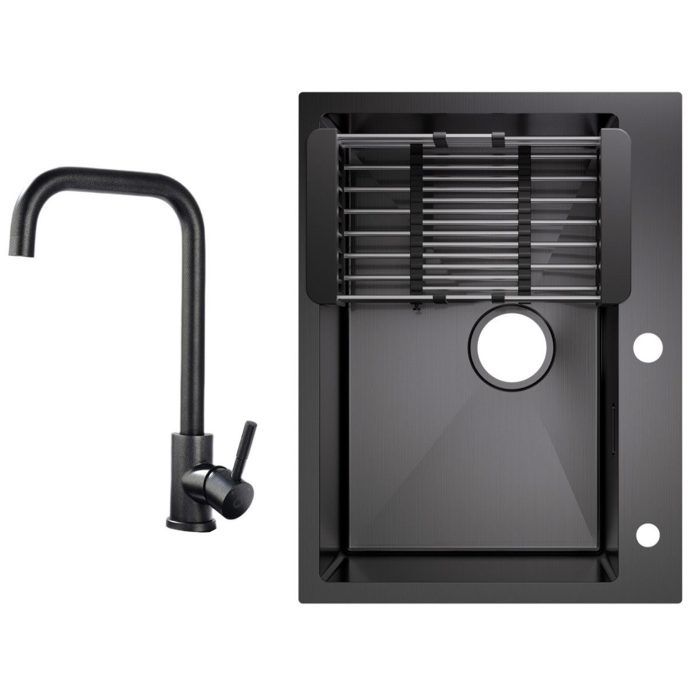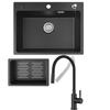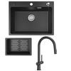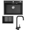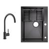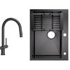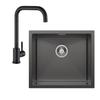 60x45cm Évier de Cuisine avec Égouttoir noir anthracite+mitigeur de cuisine Noir