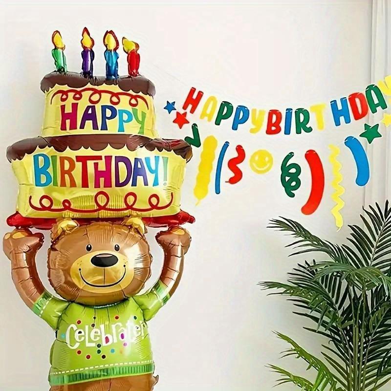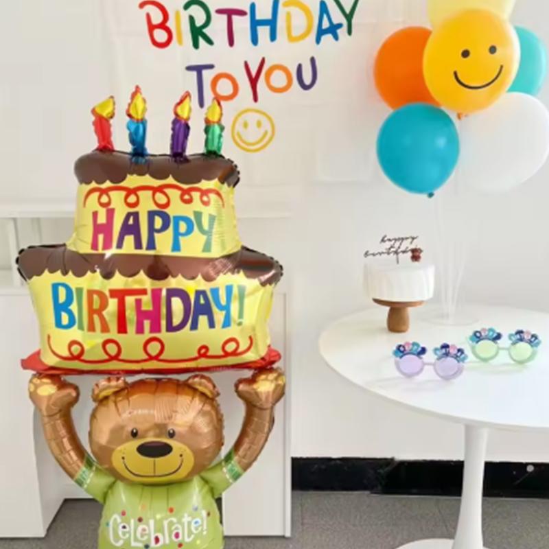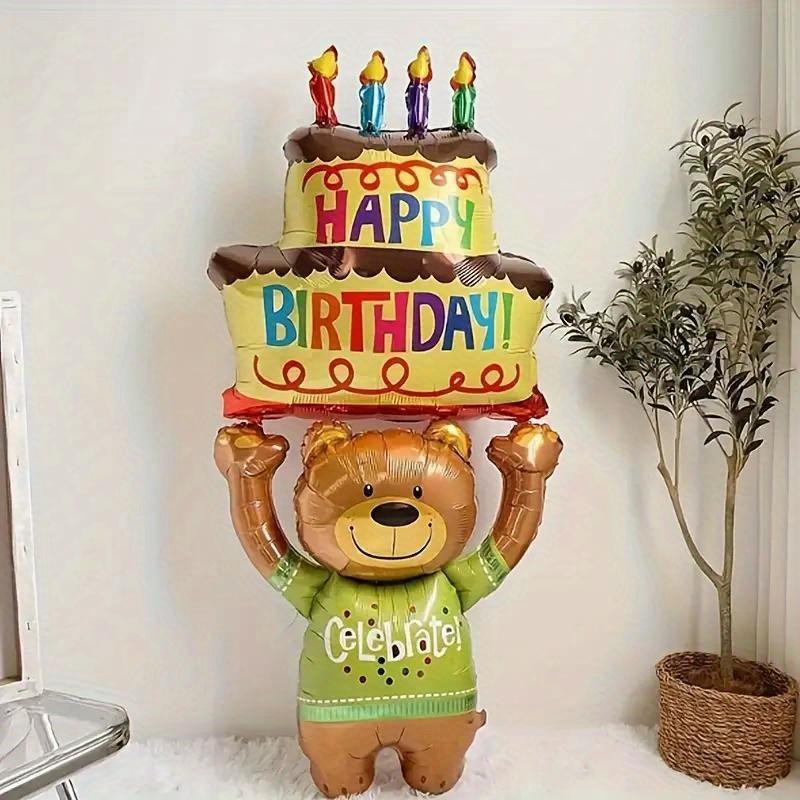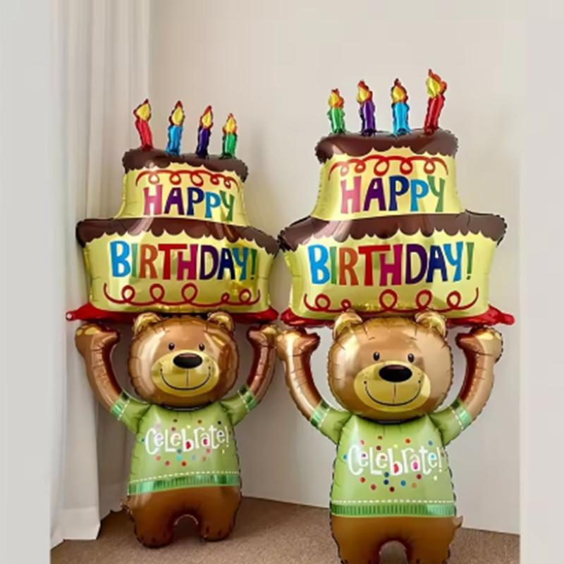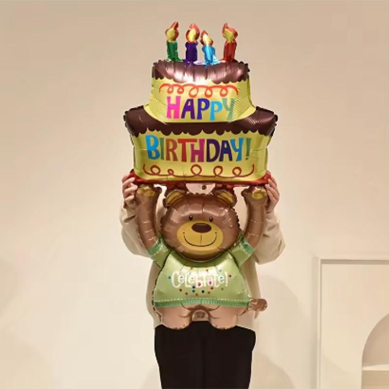 1 шт 124*59 см торт держит бурый медведь день рождения животных тематика украшения вечеринки воздушные шары