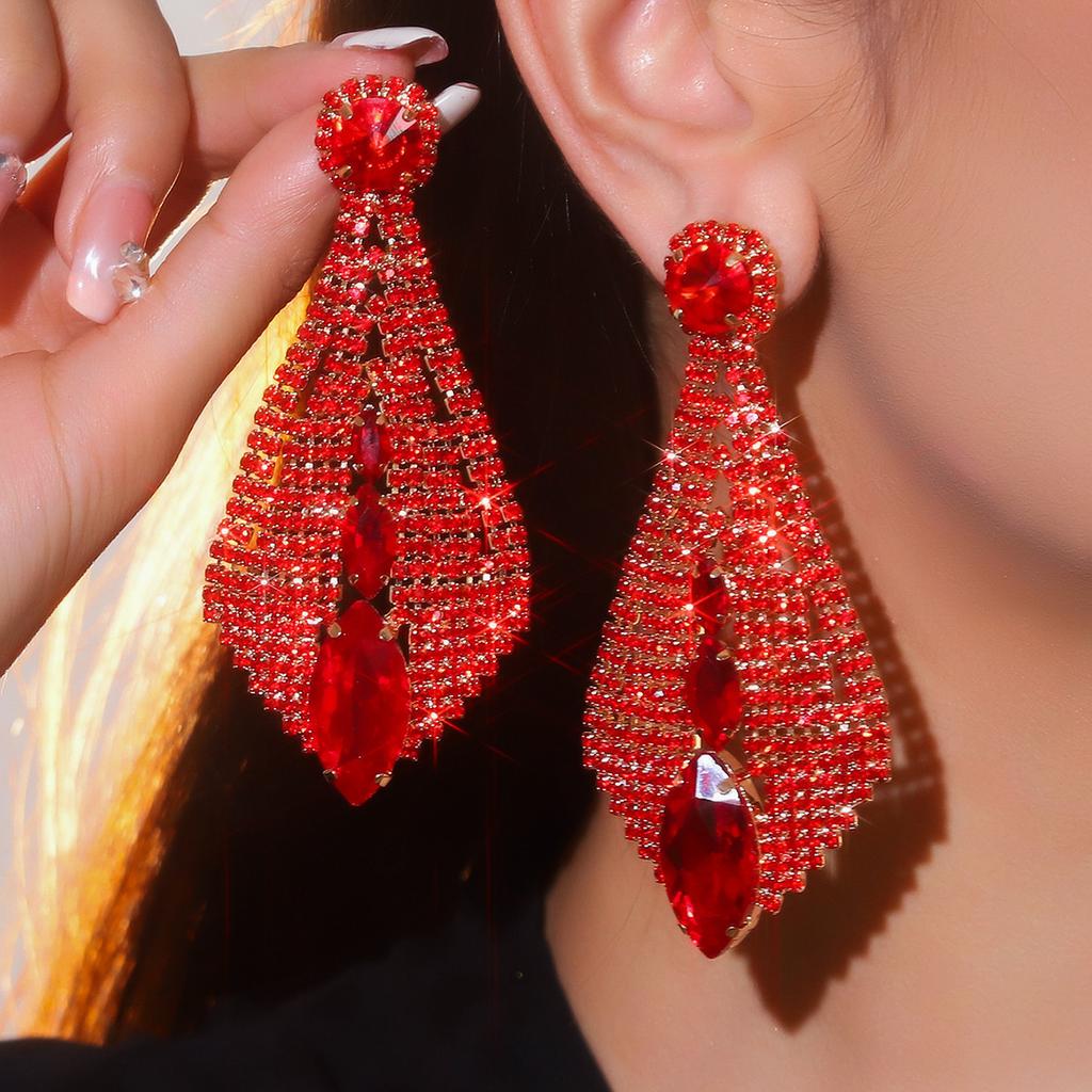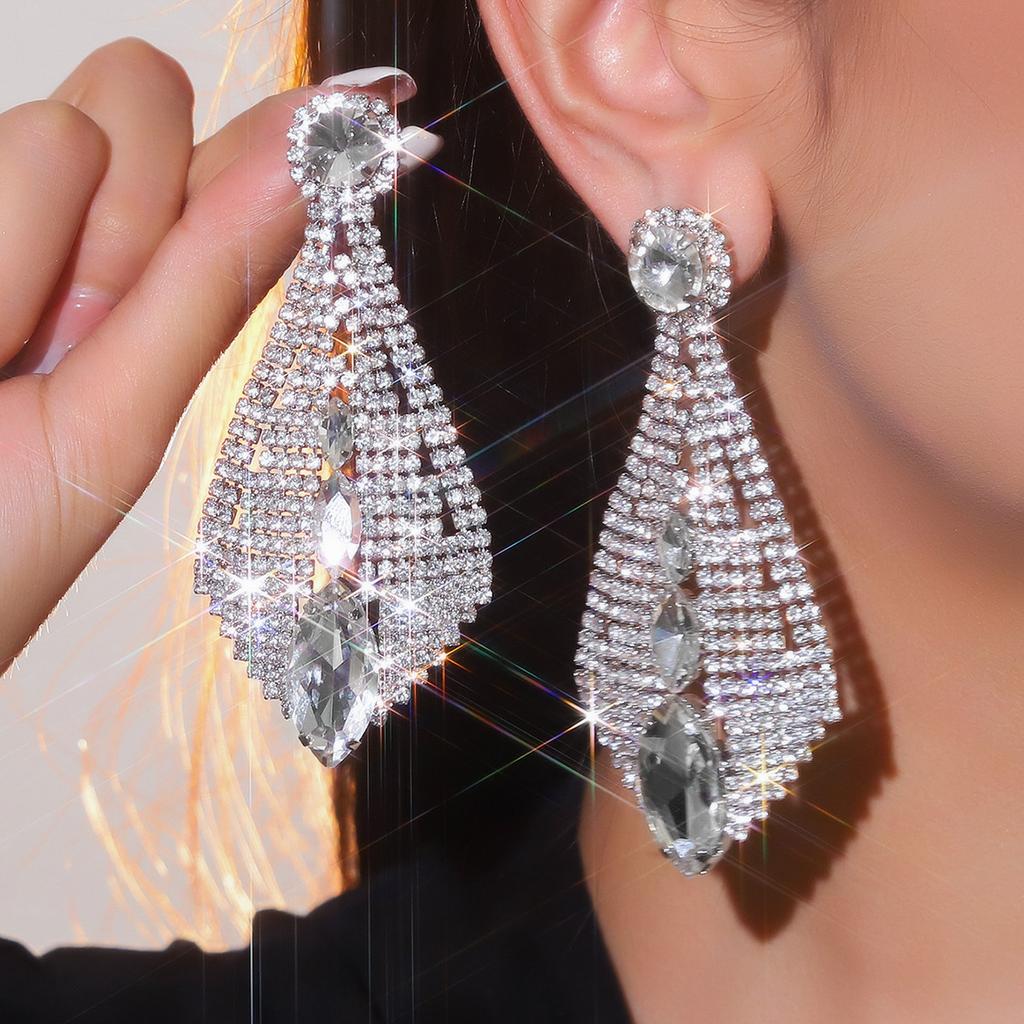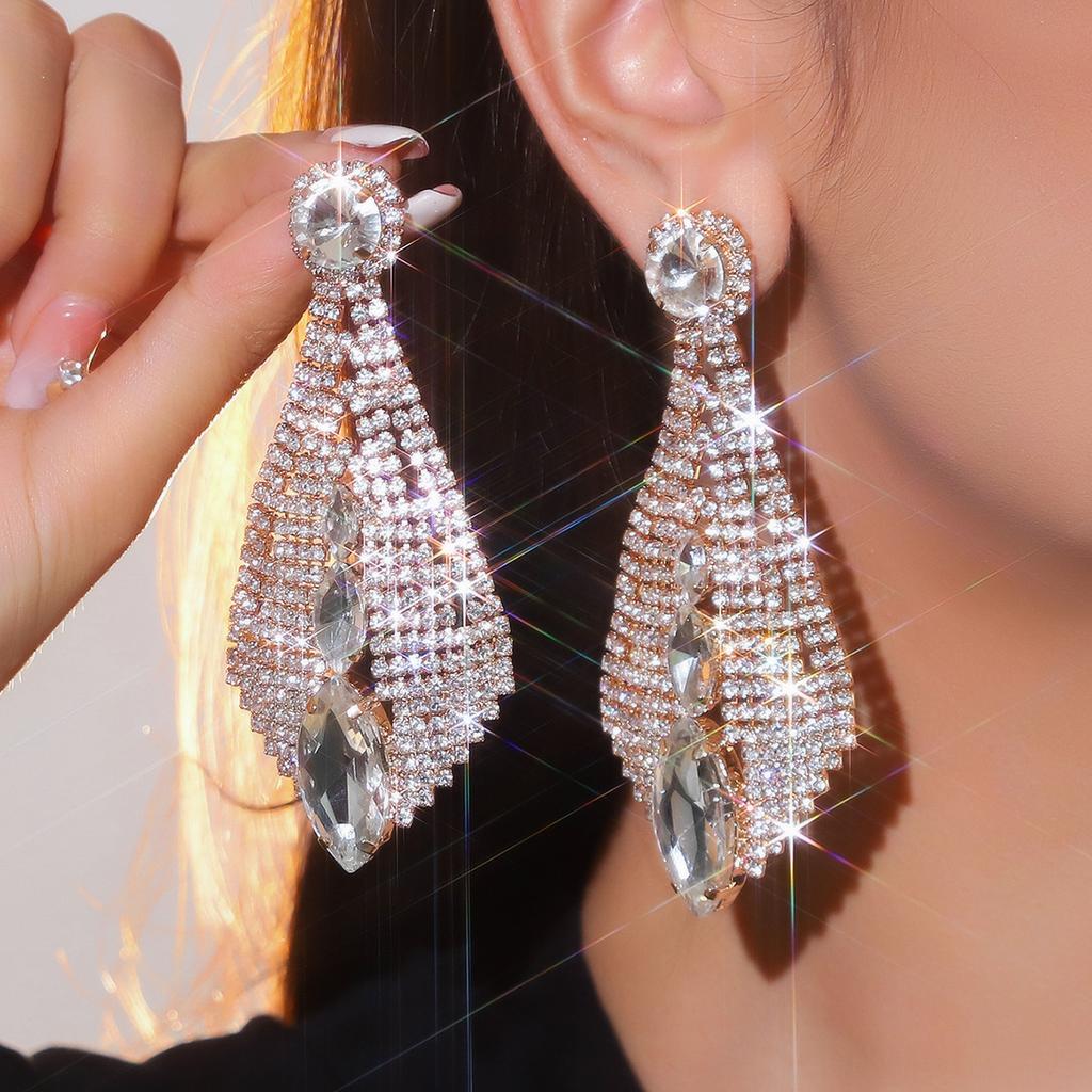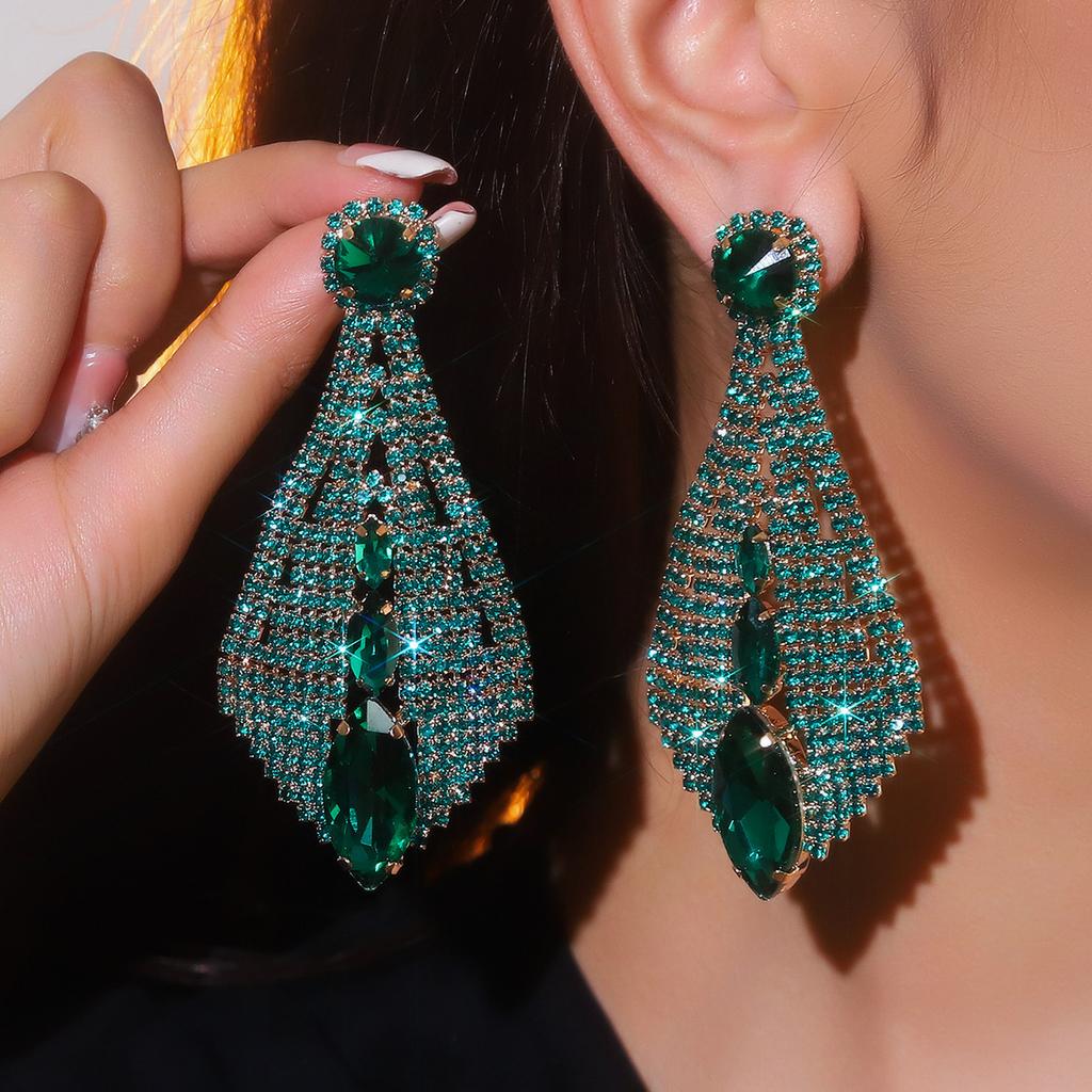 Преувеличенные сверкающие цветные длинные серьги с кристаллами, элегантные серьги с геометрическим дизайном, серьги для ночного клуба, банкетные серьги, женские серьги, 1 пара