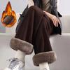 Женские брюки из овечьей шерсти, флис, 2025, зима, новые, повседневные, теплые, удлиненные, прямые брюки с высокой талией — купить товар онлайн с бесплатной доставкой по всему миру!