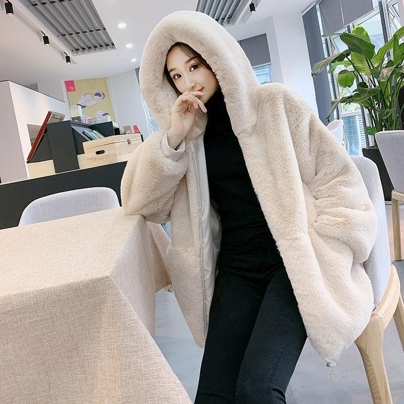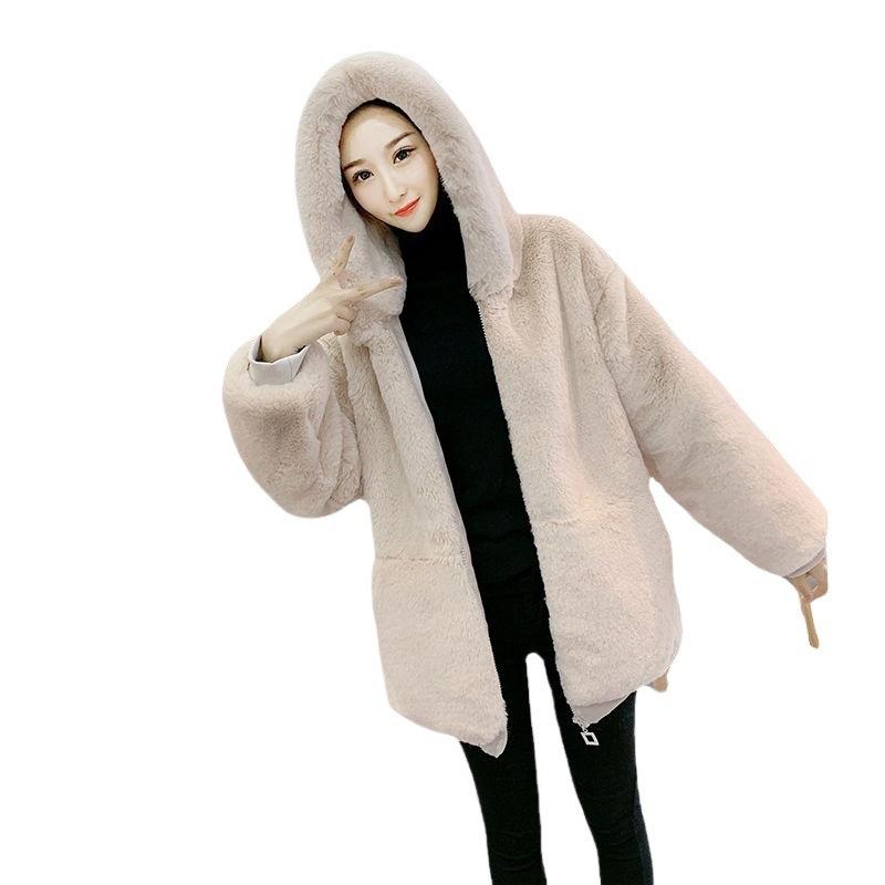 2024 новая осенне-зимняя версия искусственного меха куртка женская свободная утолщенная искусственный мех кролика плюшевая средняя и длинная с капюшоном