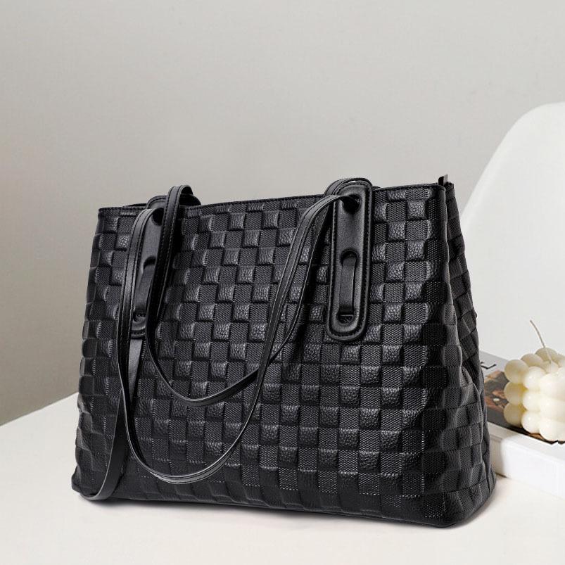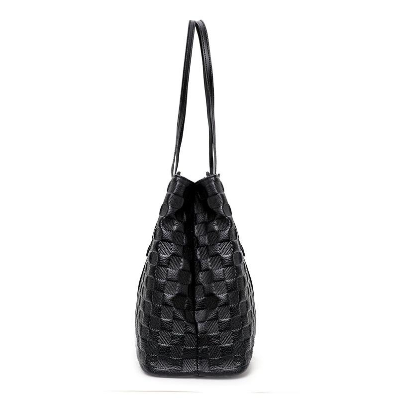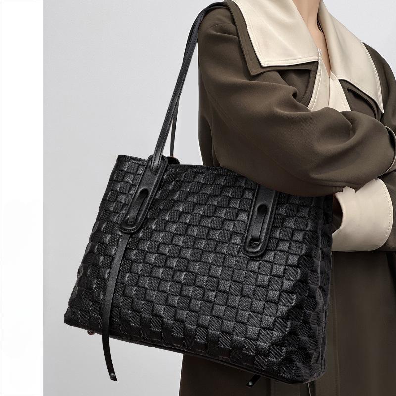 Новая тисненая клетчатая одноплечевая сумка большой вместимости, модная универсальная женская сумка-тоут из кожи
