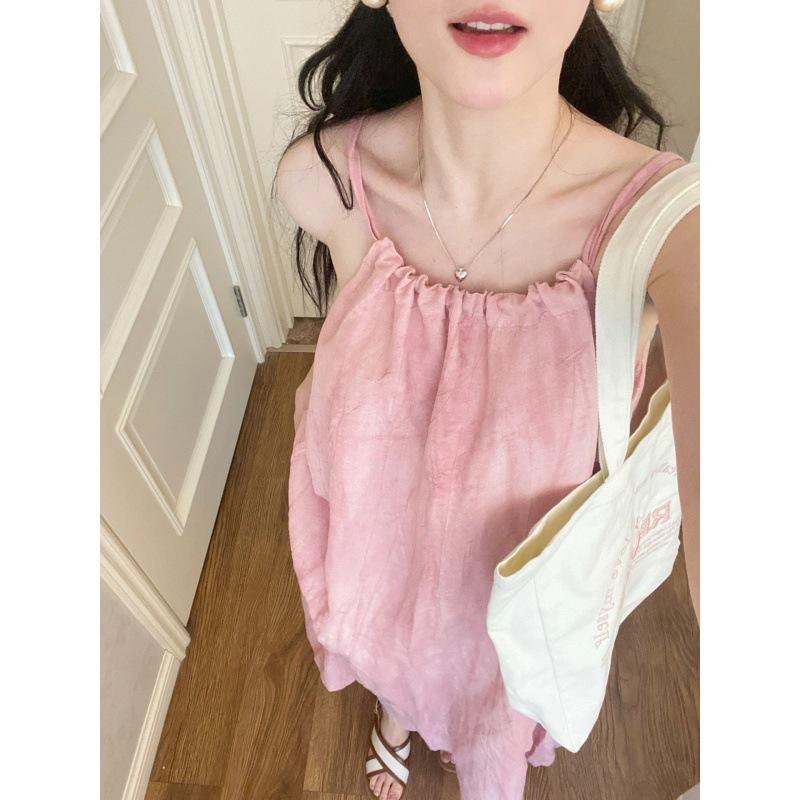 Льняное платье на подтяжках, свободное и тонкое, однотонное, большая юбка-солнце, плиссированная, без рукавов, с вырезом на плече, длинная юбка, юбка А-образного силуэта