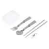 Улучшите свои впечатления от обеда на открытом воздухе с помощью нашего набора тарелок для кемпинга из титана, 8 шт.. В этот комплект входят пять прочных титановых пластин и практичный набор столовых приборов, созданных для удобства и долговечности во время ваших приключений на природе.