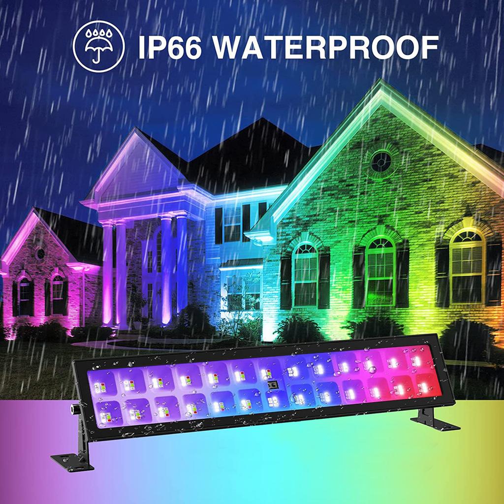 Благодаря классу IP66 светильник RGB и UV защищен от атмосферных воздействий, что делает его пригодным для использования на открытом воздухе и может выдерживать самые суровые погодные условия.
