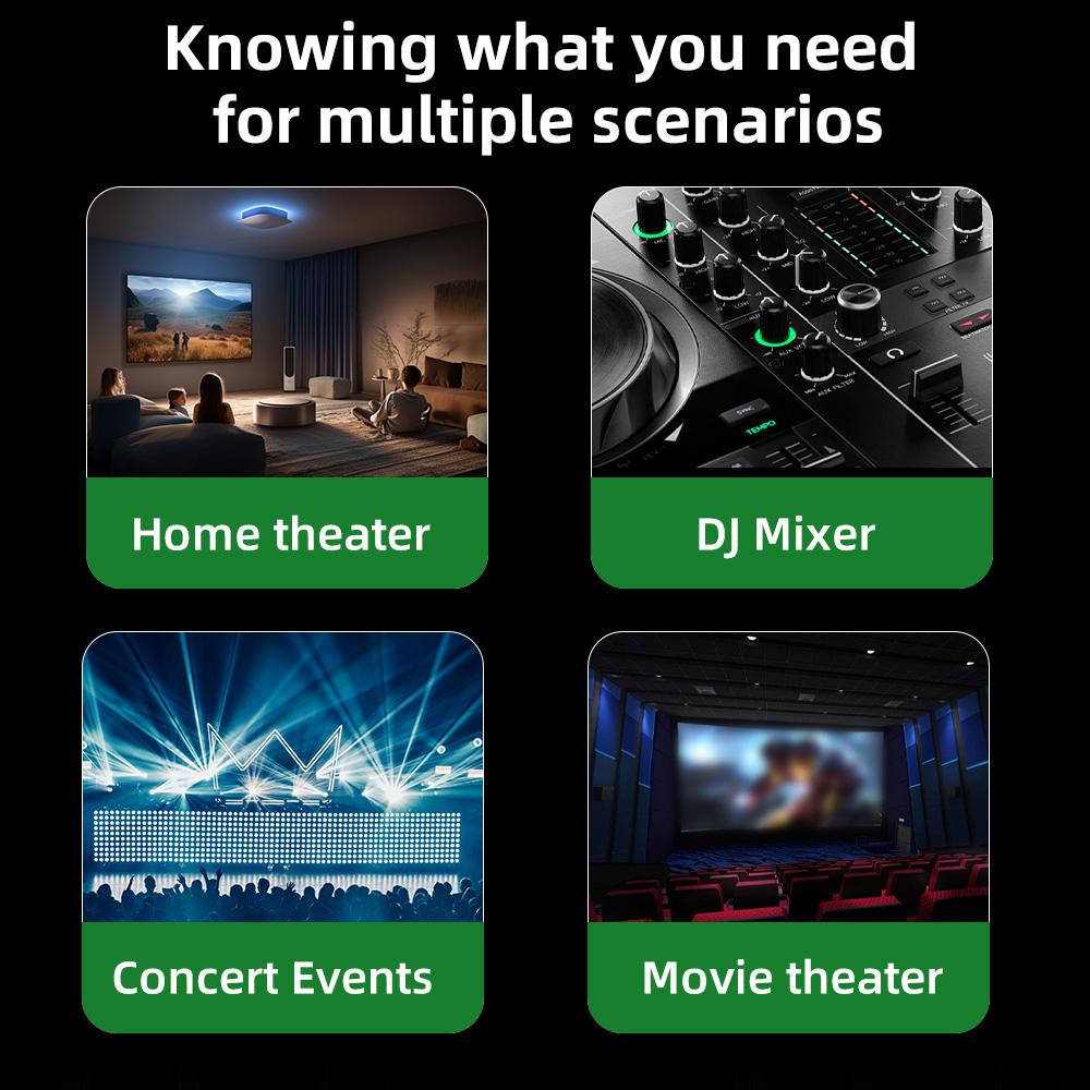 [Универсальные области применения]: Этот селекторный переключатель динамиков идеально подходит для различных сценариев, включая домашние кинотеатры, диджейские микшеры, концертные мероприятия и кинотеатры.. Точность и надежность делают его пригодным как для профессионального использования, так и для использования в домашних развлекательных системах.