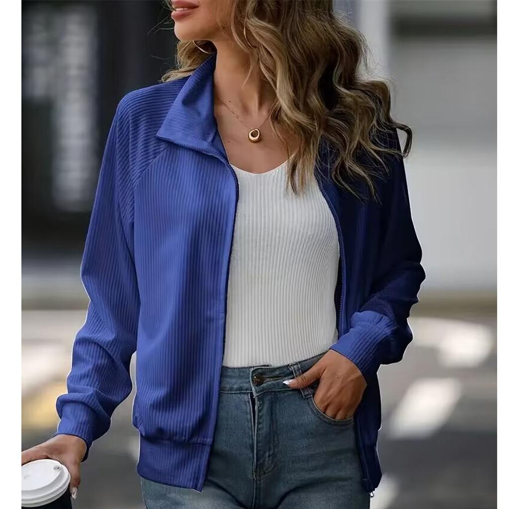 Женская повседневная однотонная свободная трикотажная куртка с длинными рукавами на молнии
