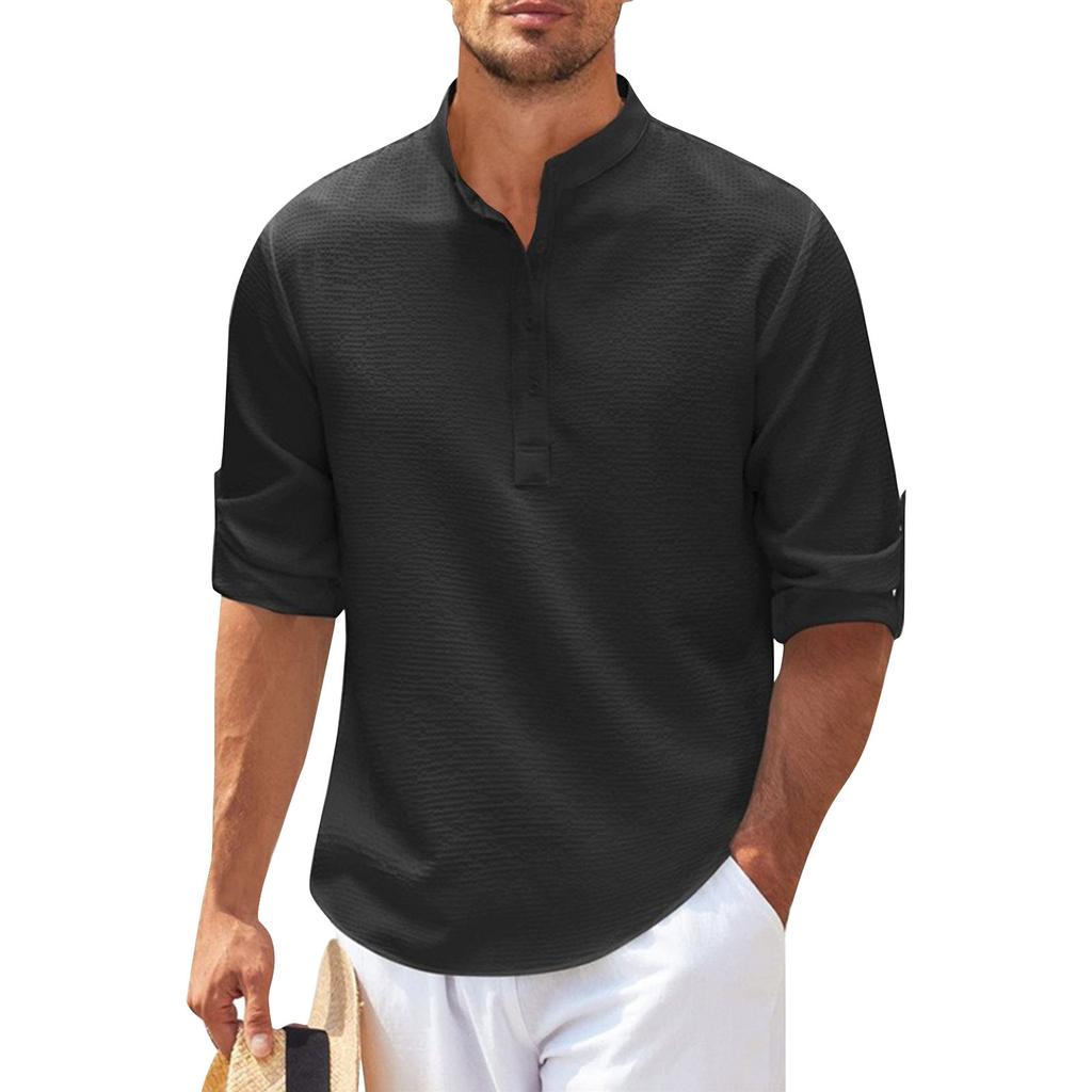 Мужская повседневная рубашка с длинными рукавами и воротником-стойкой на пуговицах