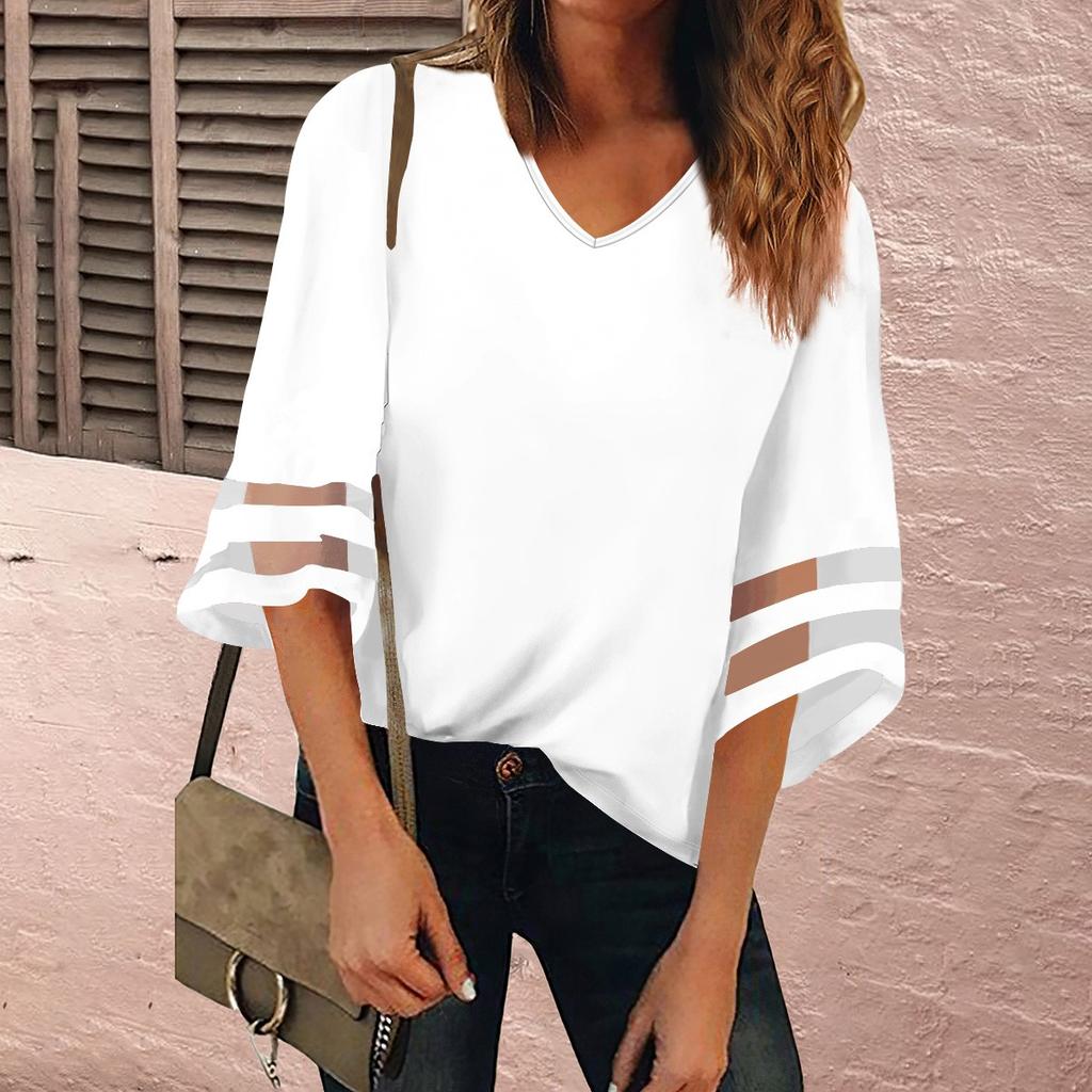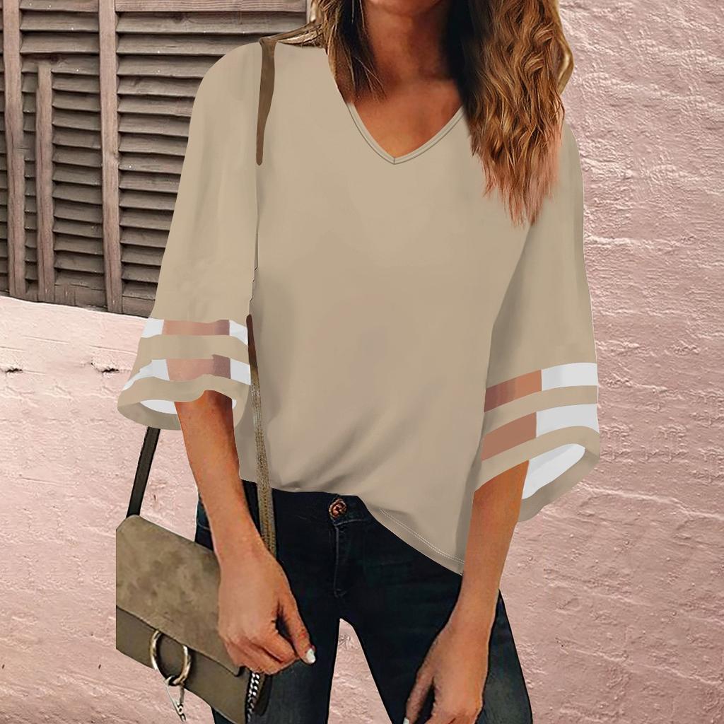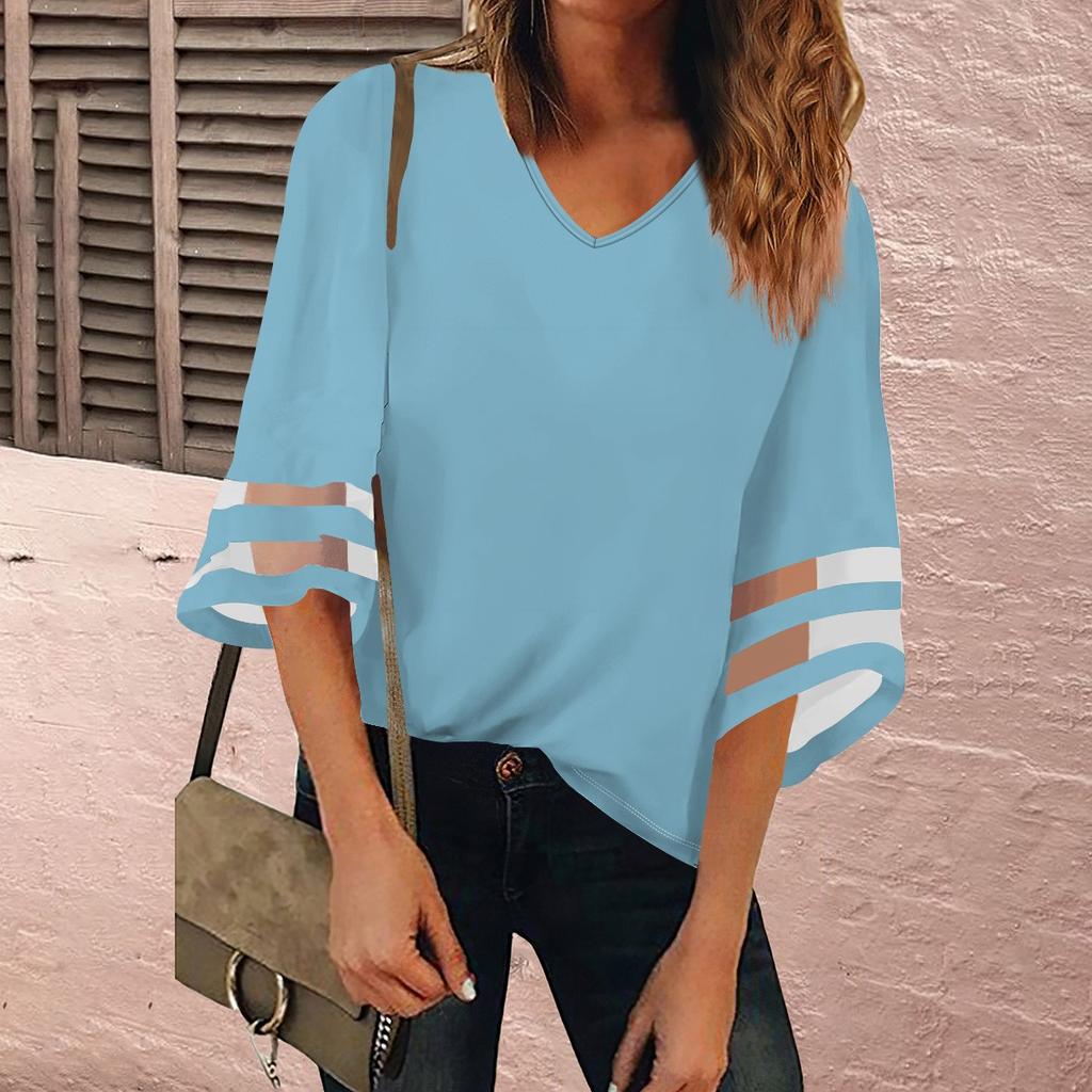 Женская рубашка, блузка, повседневные свободные рубашки, кружевные рубашки с рукавами 3/4, топы с v-образным вырезом и принтом, топы с принтом, футболки, футболки