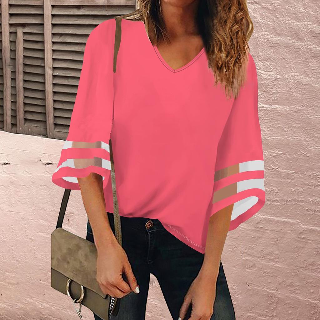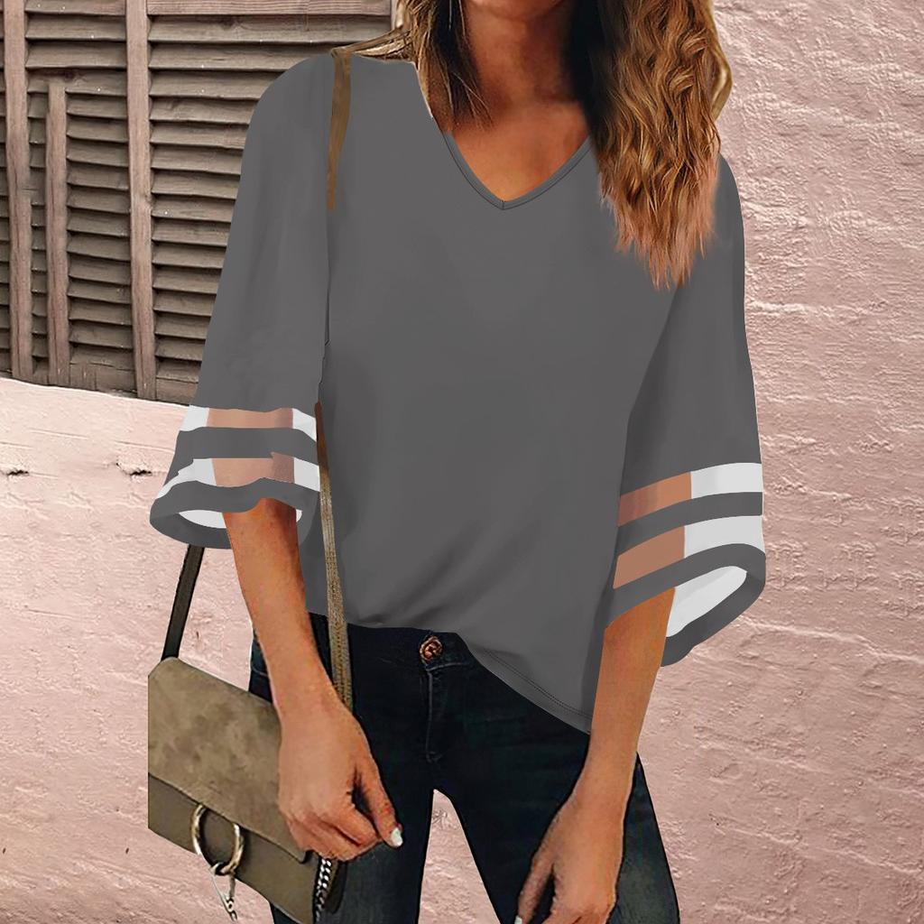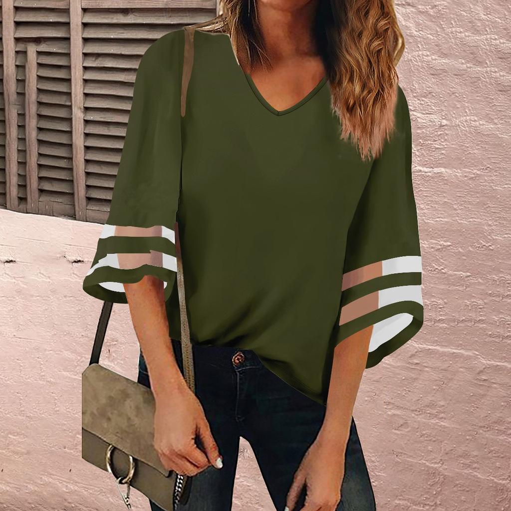 Женская рубашка, блузка, повседневные свободные рубашки, кружевные рубашки с рукавами 3/4, топы с v-образным вырезом и принтом, топы с принтом, футболки, футболки