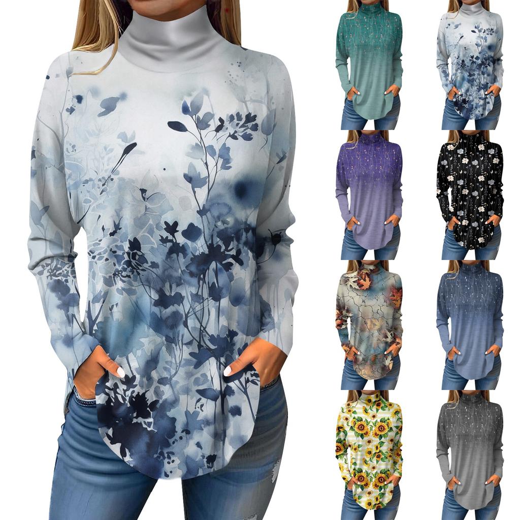 Женская модная повседневная футболка с длинным рукавом с высоким воротом и принтом, пуловер, топ — купить товар онлайн с бесплатной доставкой по всему миру!