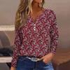 Жен. Футболка Футболка Пуговицы Цветочный принт Длинный рукав Повседневные Выходные Мода Классический Классический V-образный вырез Обычный Топ — купить товар онлайн с бесплатной доставкой до всему миру!