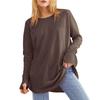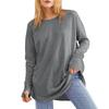 Женская однотонная свободная футболка с круглым вырезом и длинными рукавами средней длины, топ с дырявым большим пальцем