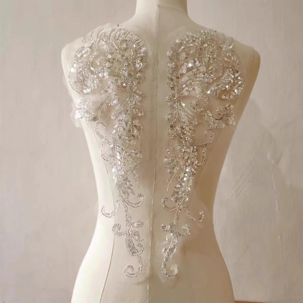 1 пара белых стразов, бисера, цветочная аппликация, хрустальный лиф, ручная работа, цветы, нашивка для ремонта свадебного декора